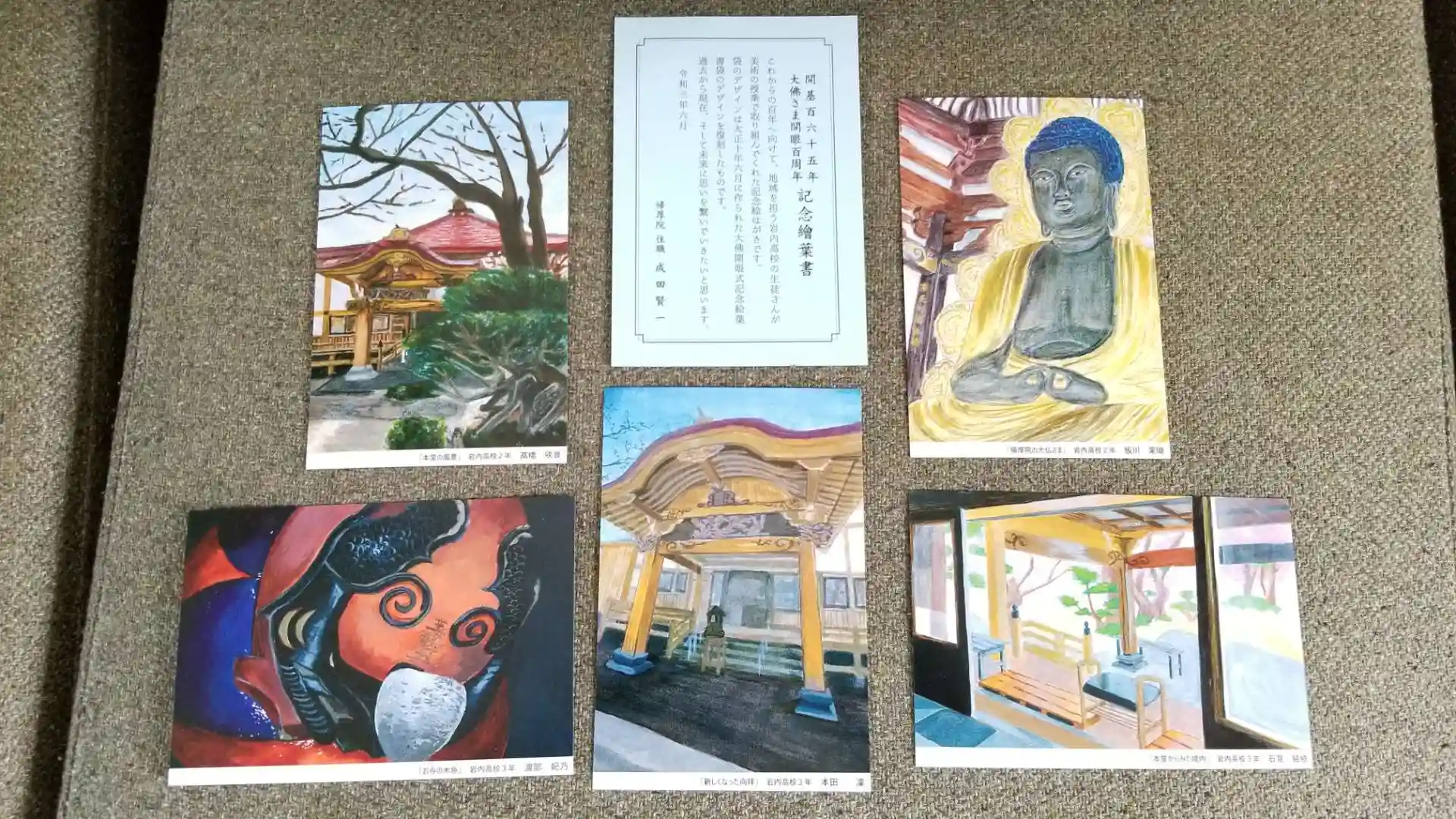 記念にお寺を書いて