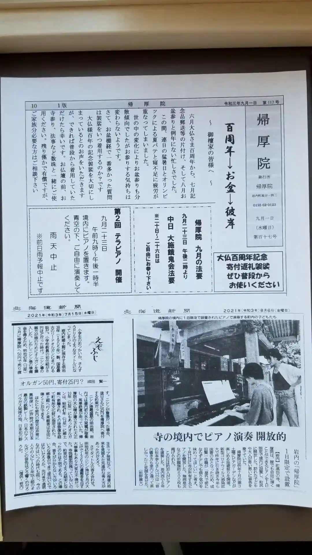 寺報帰厚院9月号