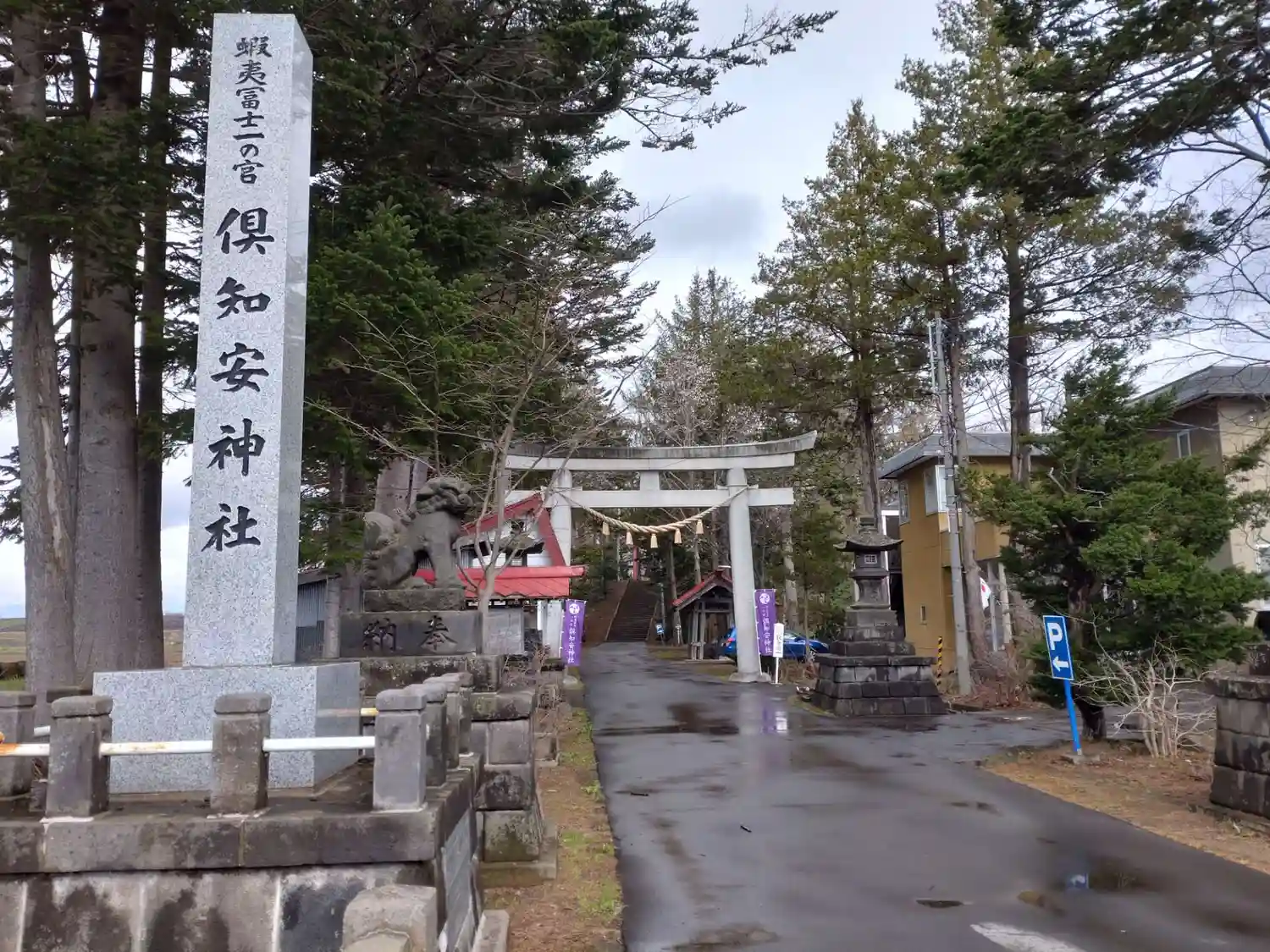 鳥居左に『倶知安神社』社号標