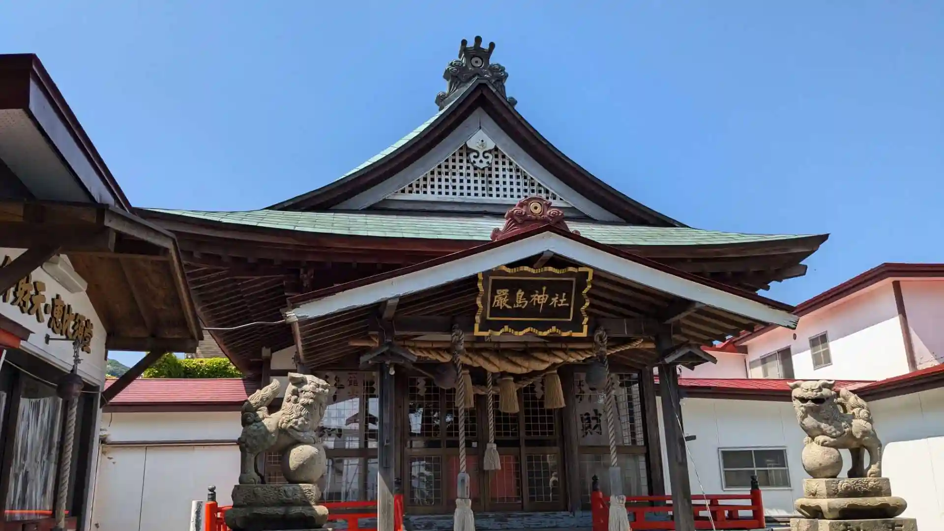 函館山七福神巡りの恵比寿様と弁天様が祀られている神社で社殿前にある御堂には二体の像が祀られています。