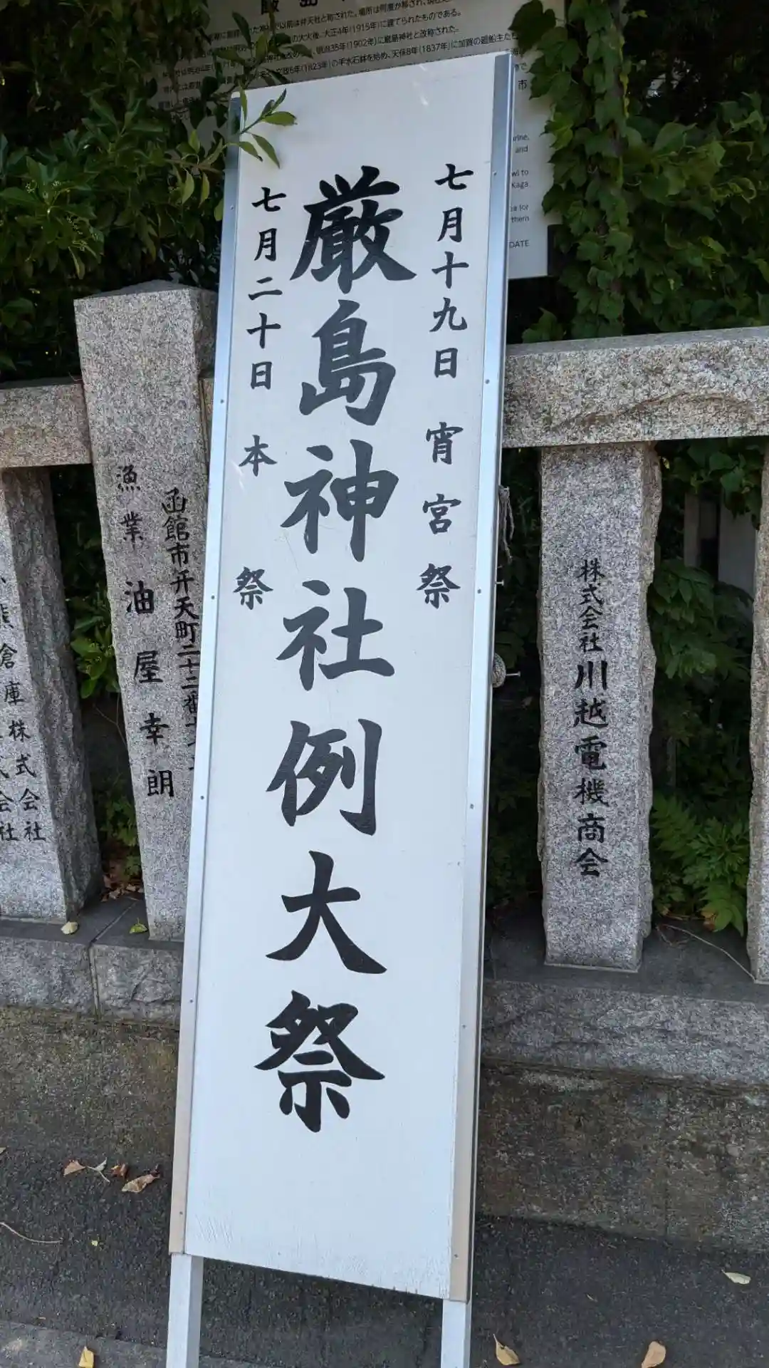 厳島神社は海の守り神ということもあり玉垣には奉納された漁業関係者の方々の名前があります。私が参拝に来た時はもうすぐお祭りでその準備をされていました。