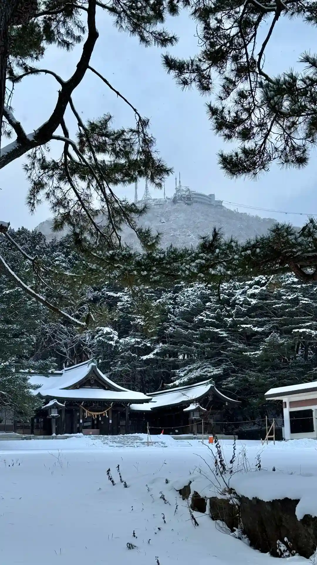 神職様たちは雪かきで大変そうでした😥
