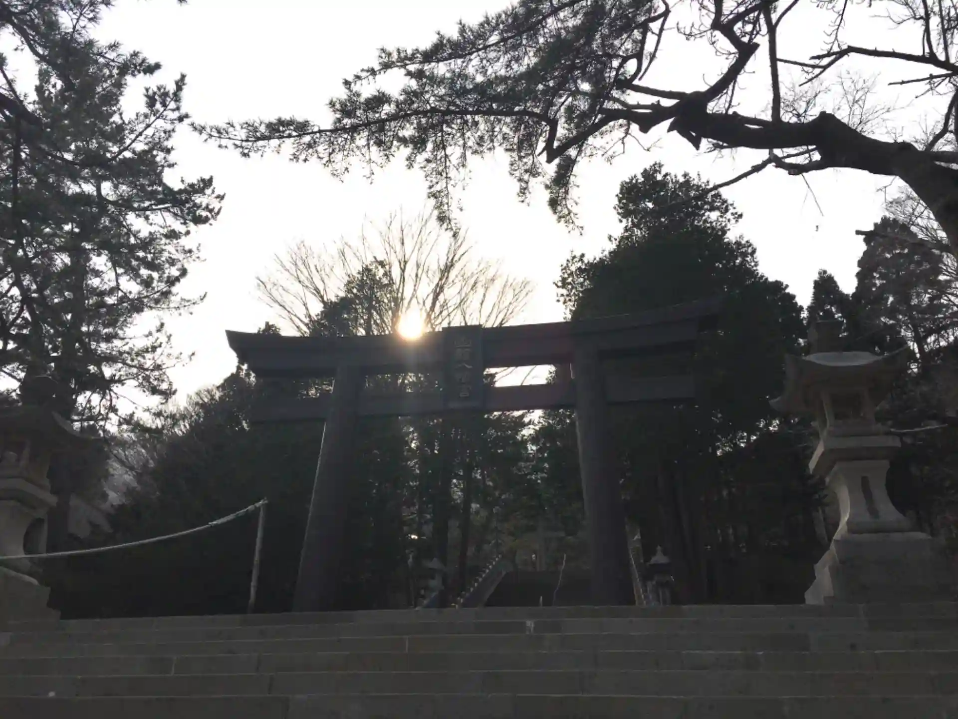 三ノ鳥居に太陽が。