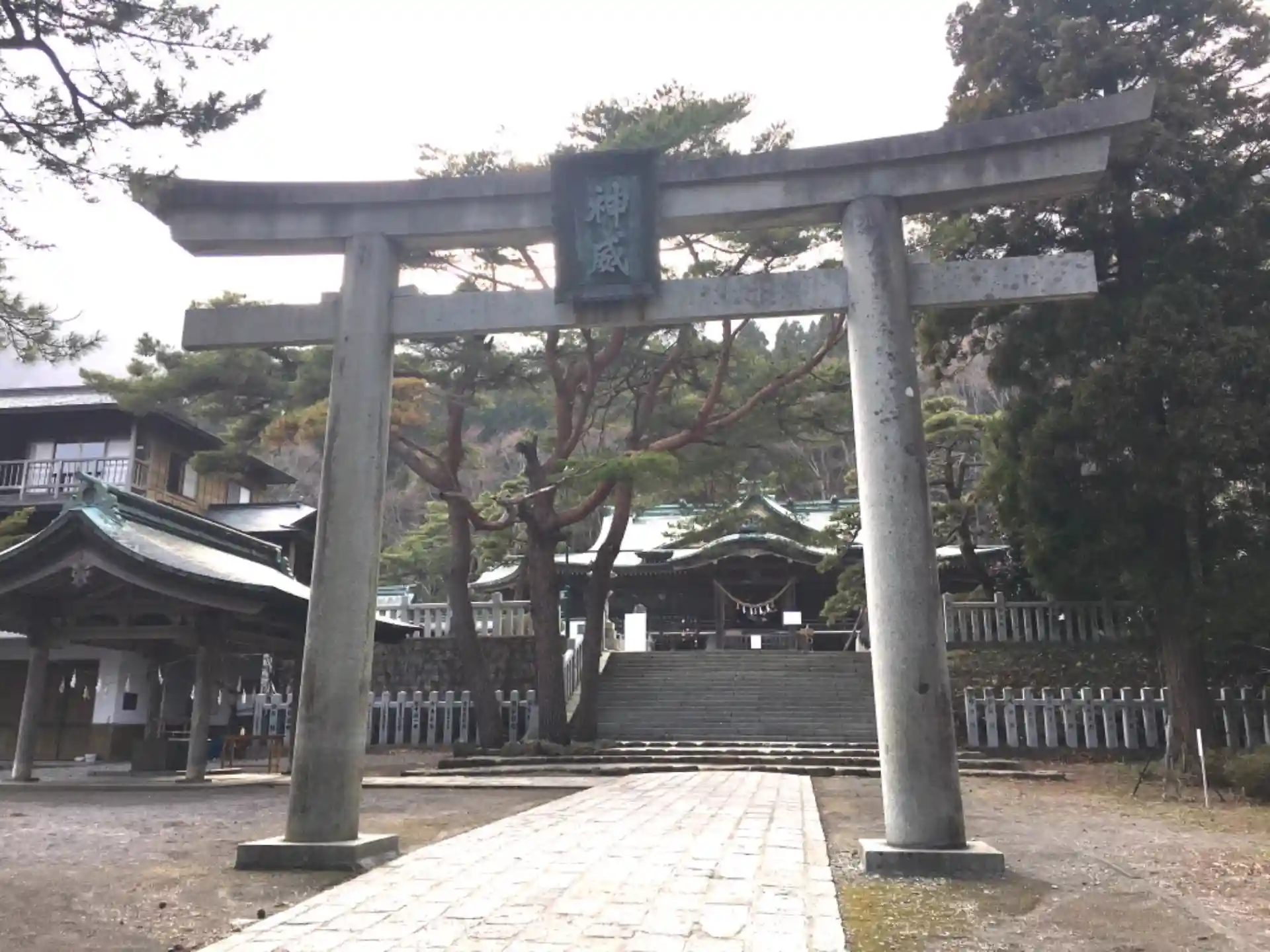 三ノ鳥居には「神威」と書かれた額が掲げられています。