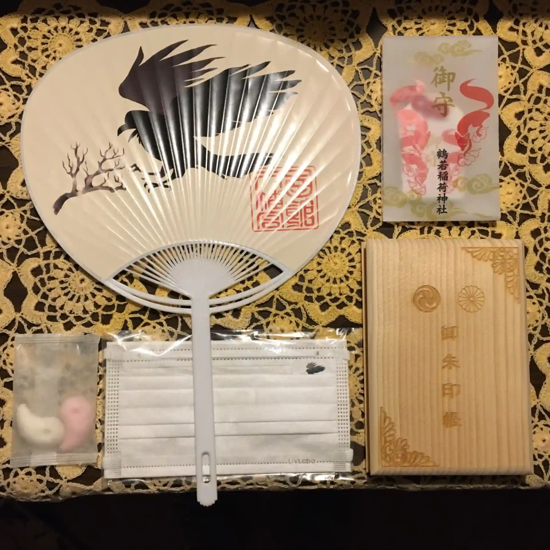 今日いただいた授与品。マスクや勾玉の形のお菓子も添えてくださいました。