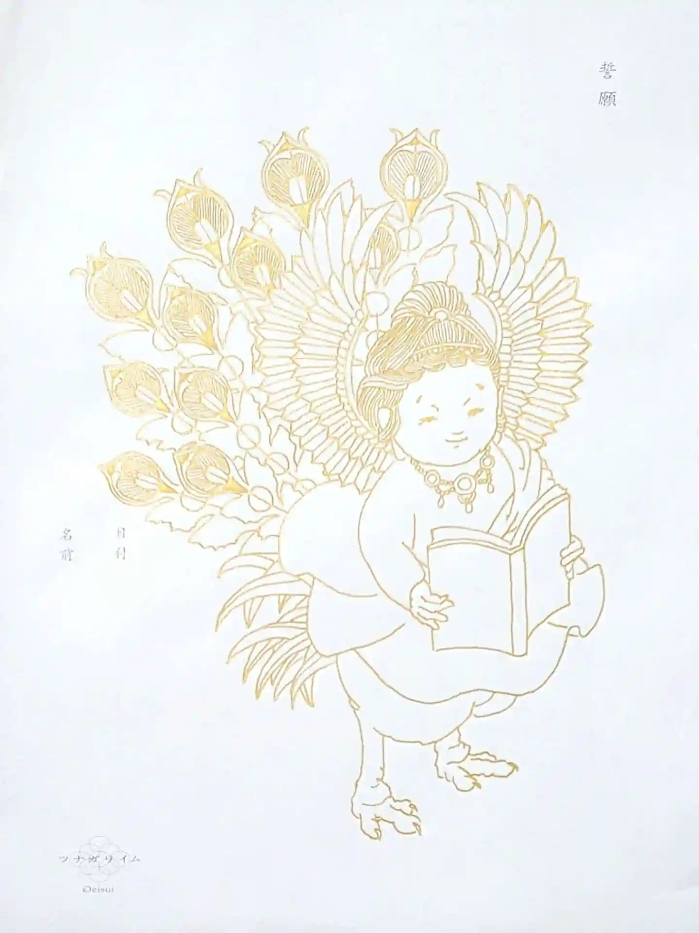 お納めさせていただいた写仏は「迦陵頻伽」ちゃんのゴールドバージョンです。
