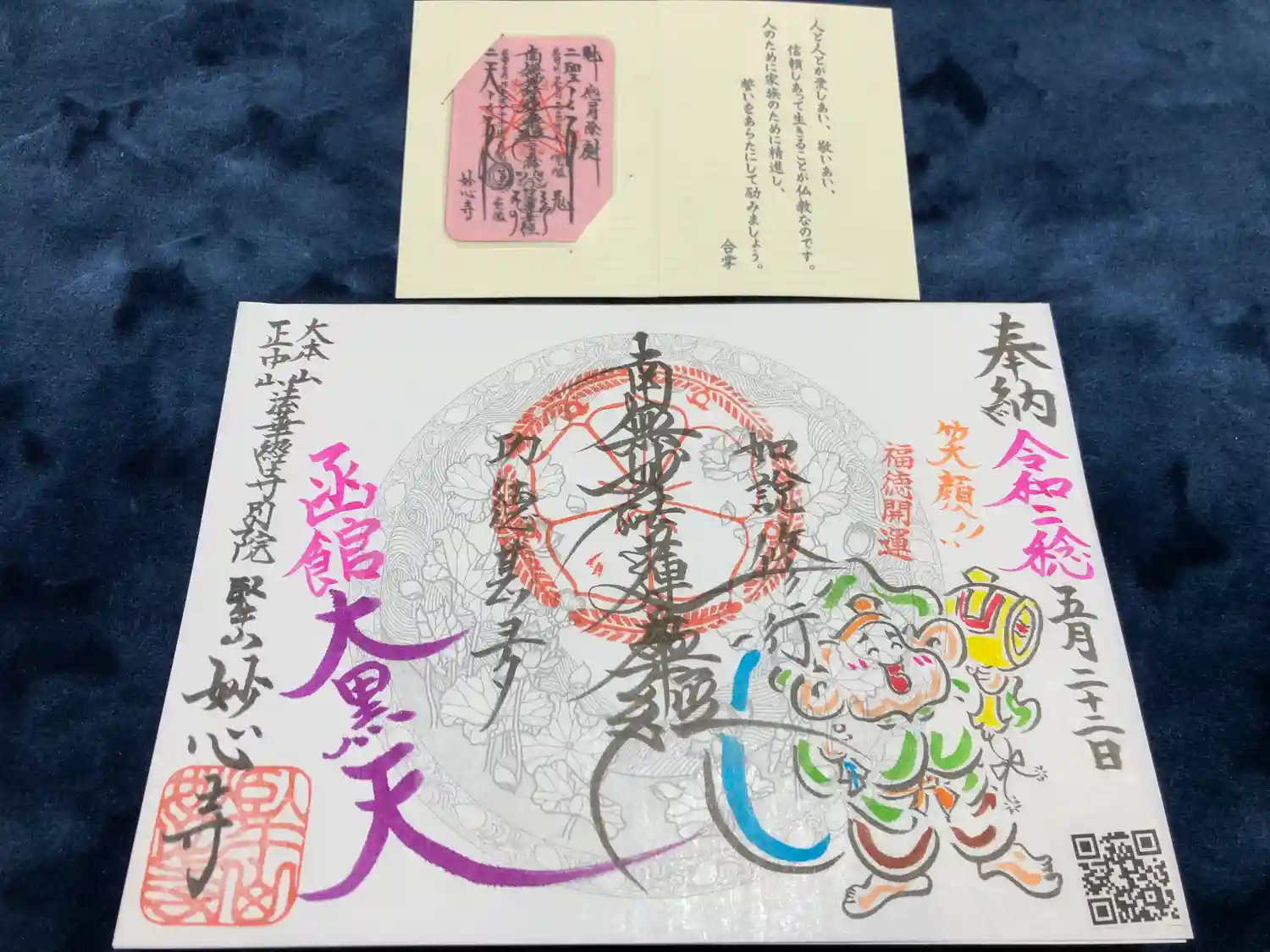 このお寺ではカラフルな御首題を頂くことが出来ます。