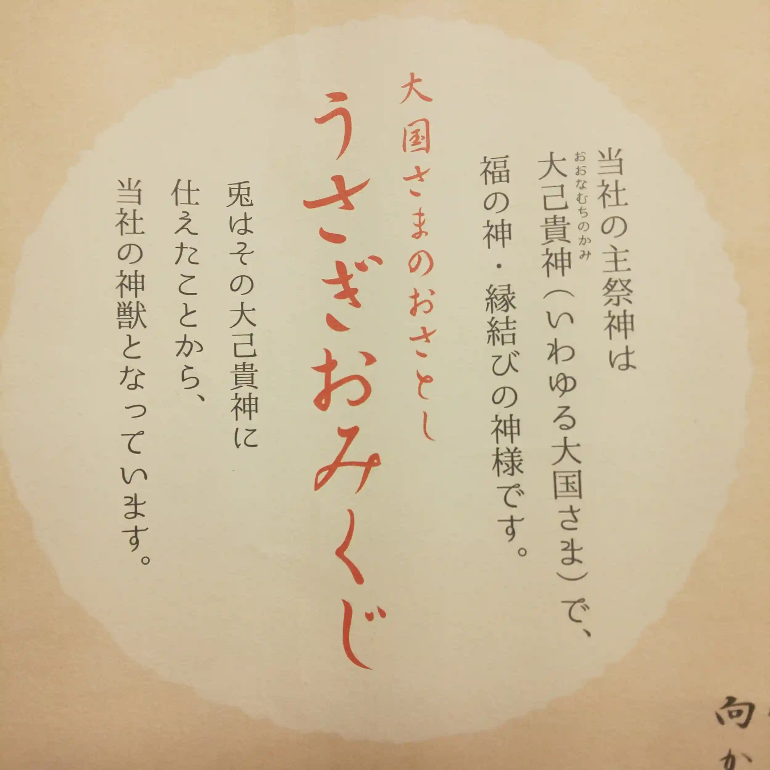 主祭神である大己貴命に仕えた兎が神獣となっています。