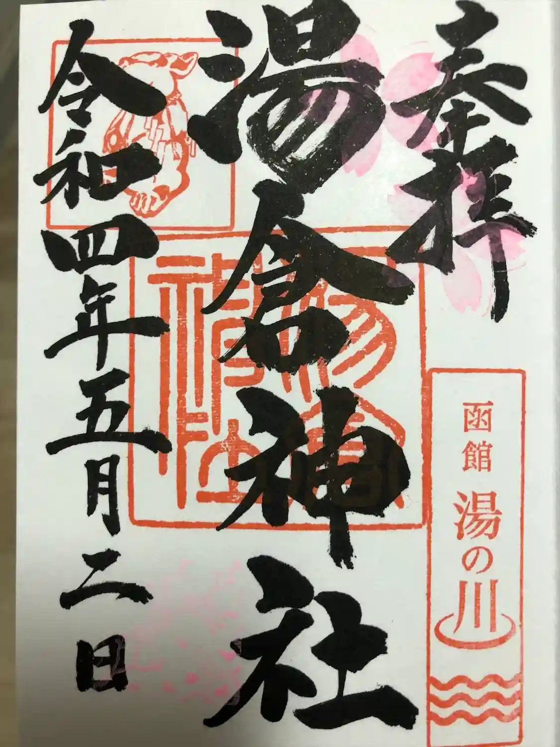 御朱印(500円)をお願いしたら、湯倉温泉の入浴剤1人分も頂きました。