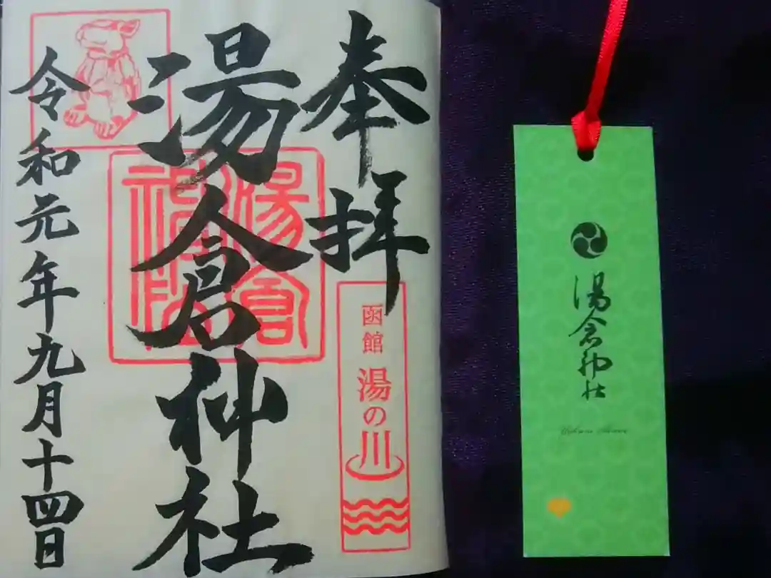 神兎と湯の川温泉の印が素敵な「御朱印」、拝領の「栞」