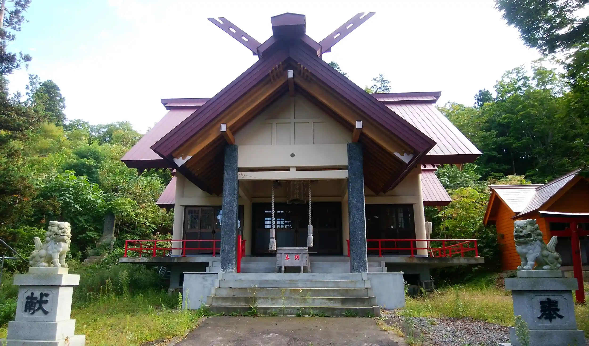尾札部村が周辺との合併後に南茅部町となり、現在は函館市に編入されているエリア(沿岸をひた走ると小さな漁村が点在する地域)にある、神社本庁に属さない朱い鳥居の稲荷神社(旧社格は村社)です。