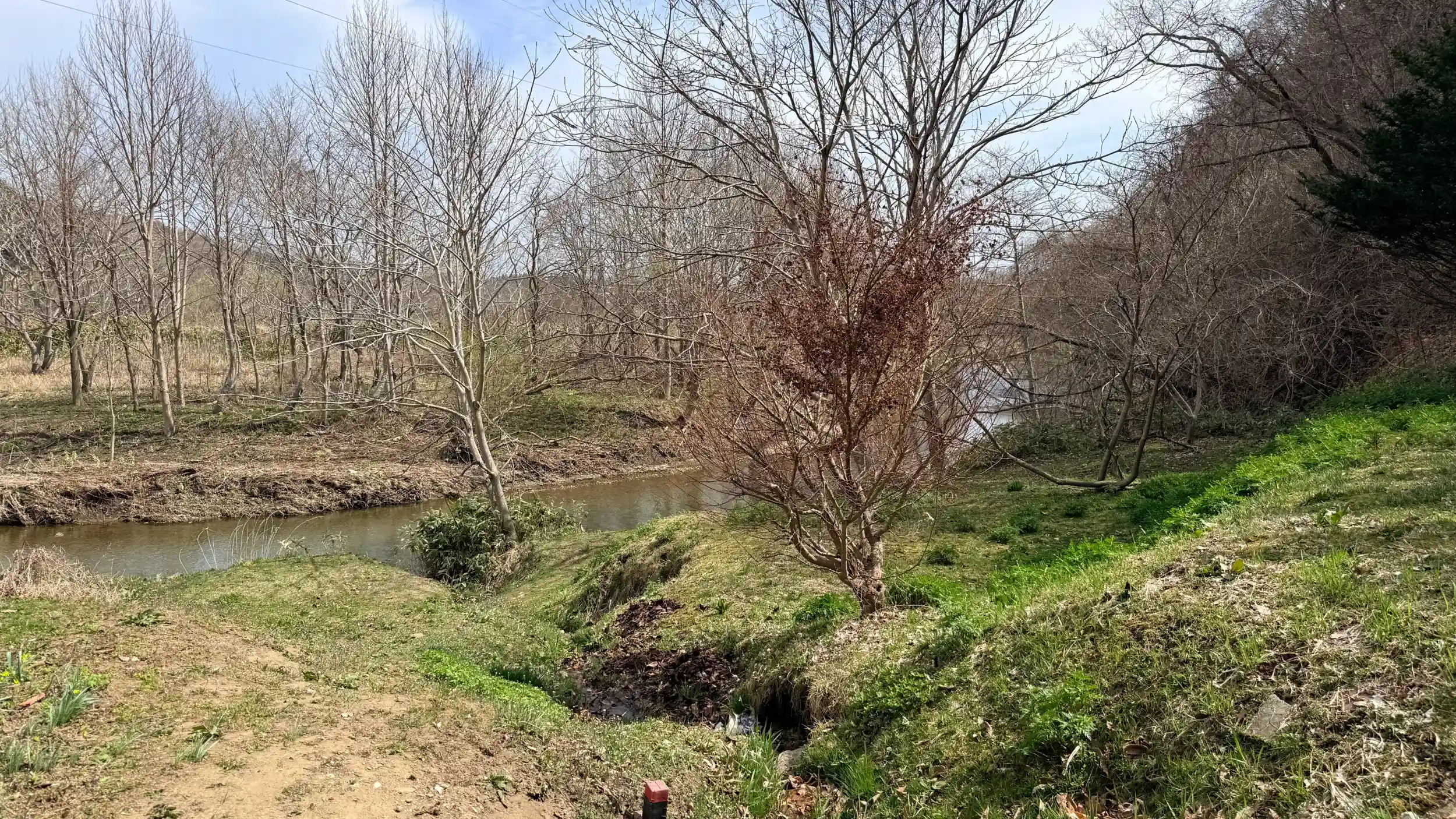 境内すぐ横には川があります