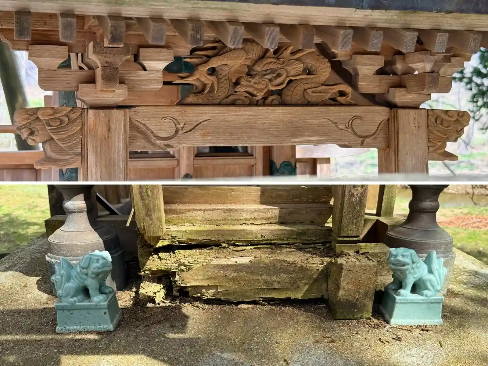 祠の🐉の彫刻も素敵😍