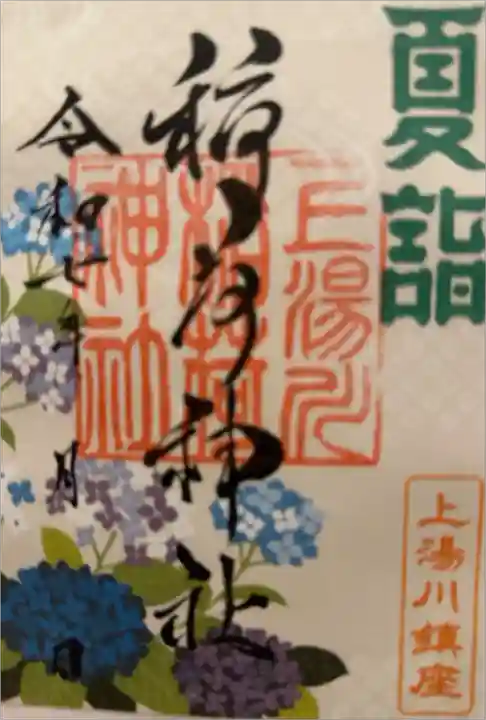 参拝させて頂きました。夏詣の御朱印は階段下の社務所で頂きました。2ポイントです。通常の御朱印は拝殿の賽銭箱横の引き出しにありましたが、直書きもして頂けるようです。