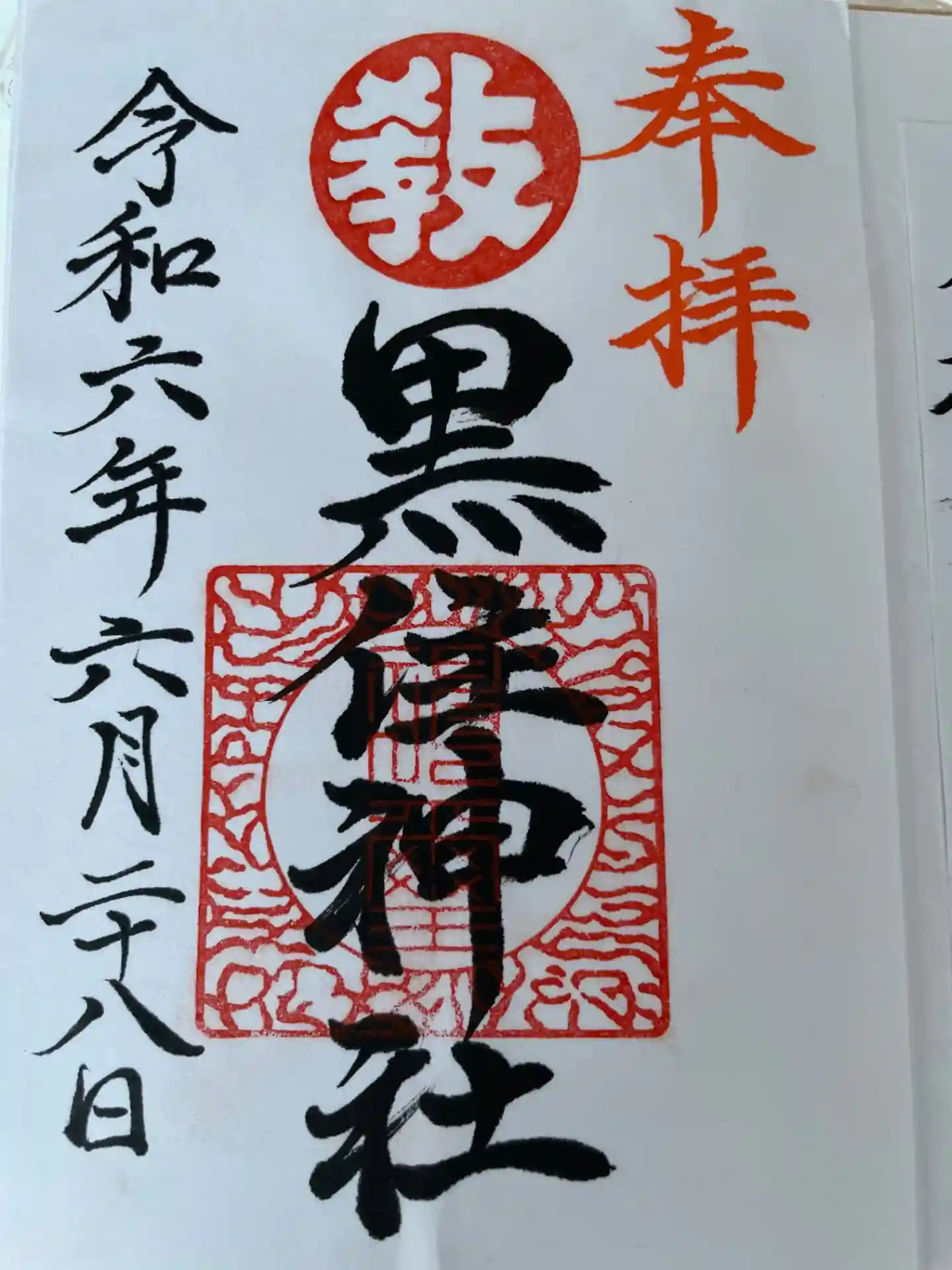 黒住神社 社務所にて書き置き御朱印頂戴致しました(自宅のチャイムを鳴らしました)