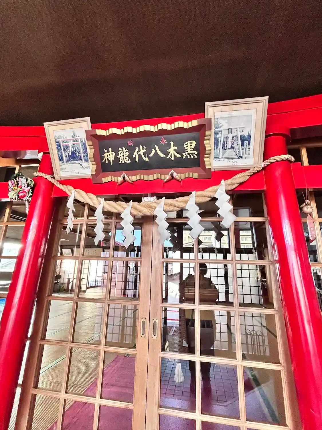 階段を登ったら、玄関のドアが閉まっており、神社慣れしていないので、悩みながらも開けました(笑)