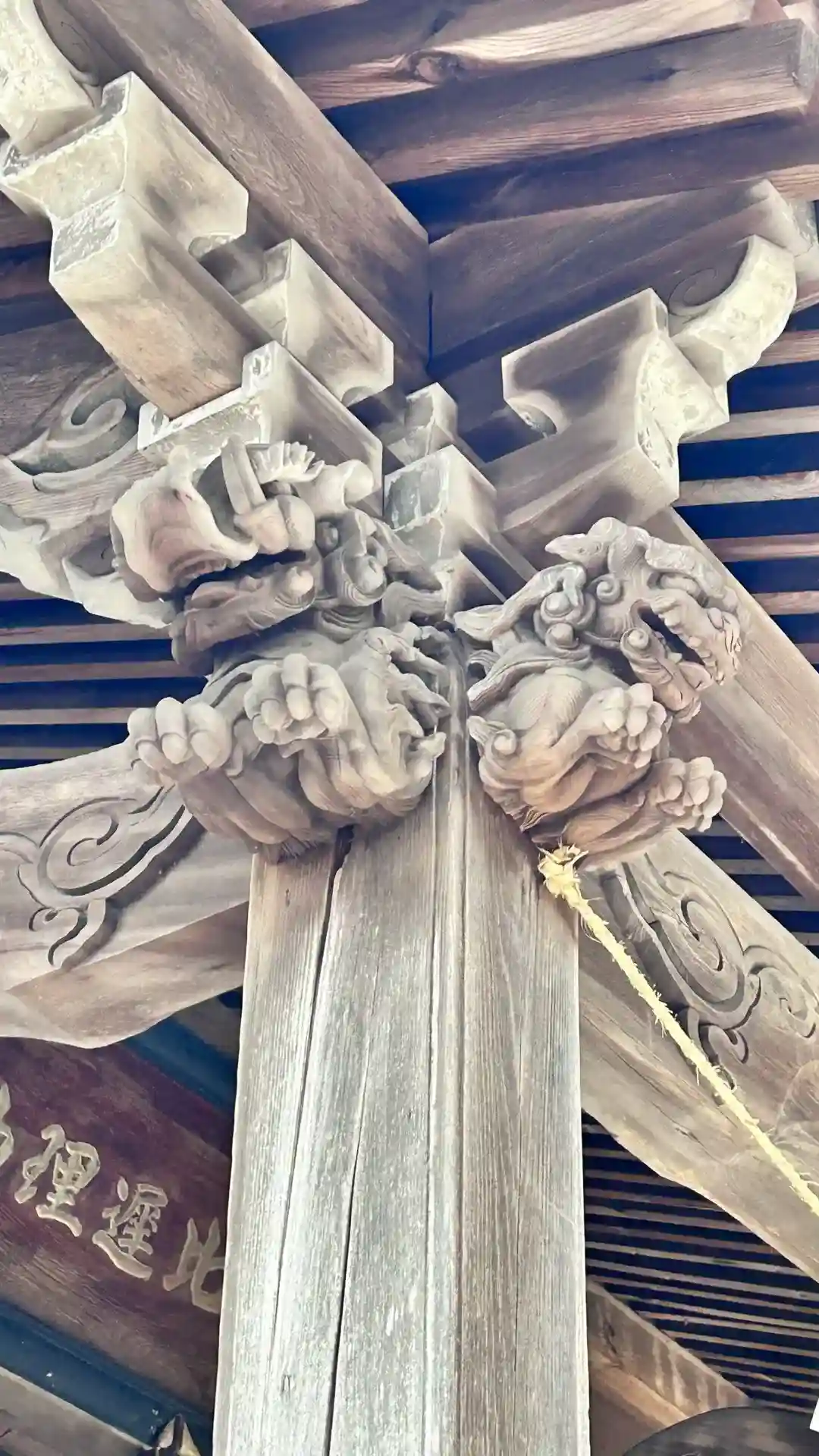 この時はまだ気付いてなかったのですが、鈴の上には立派な彫刻がありました