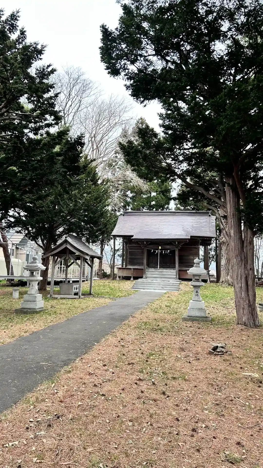神社の敷地内に車を止めて散策開始です
