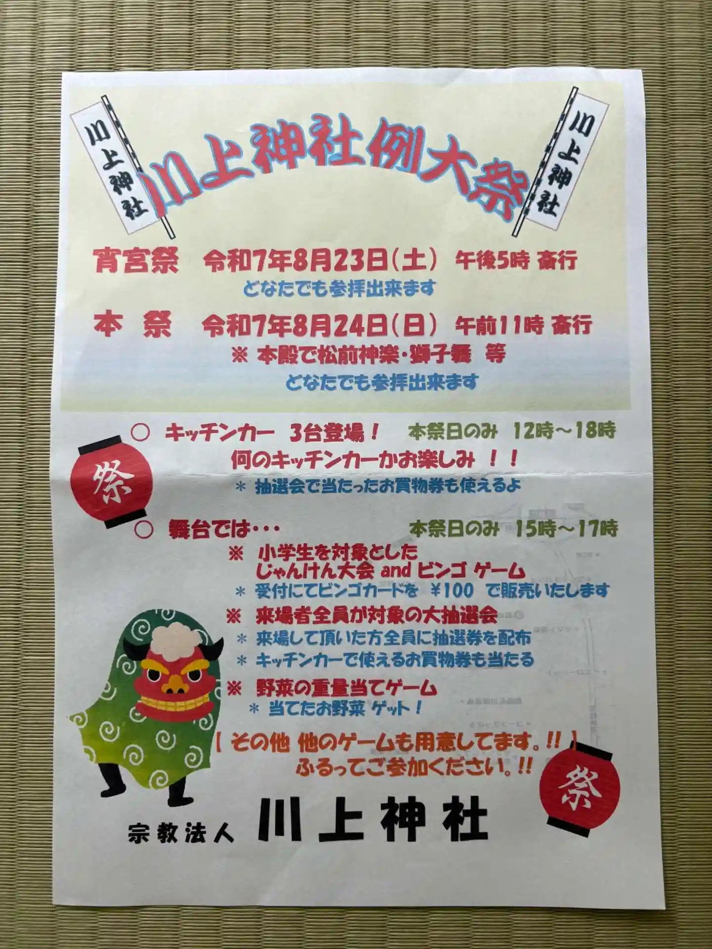 自宅にほど近い神社、毎年8月には例大祭が行われます。