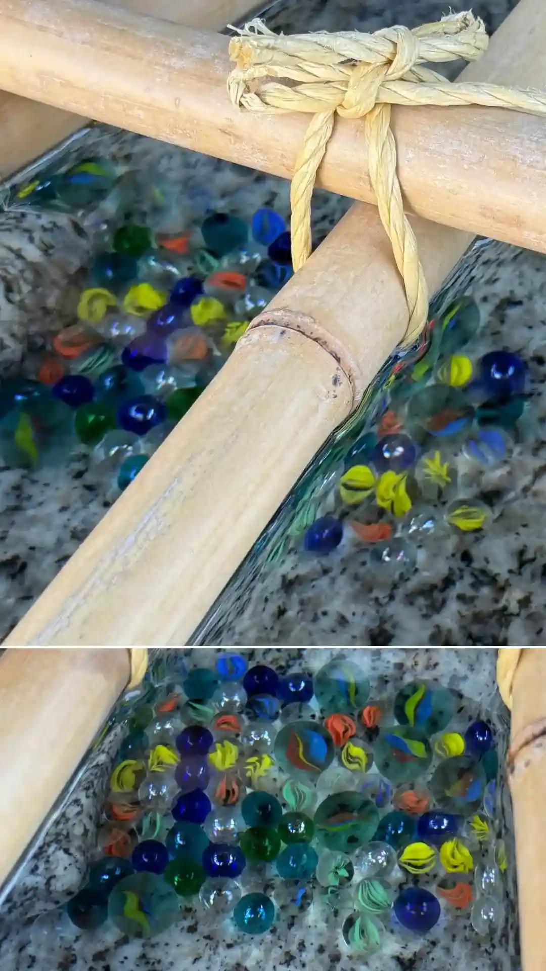 手水鉢の中あるビー玉が、キラキラでかわいい