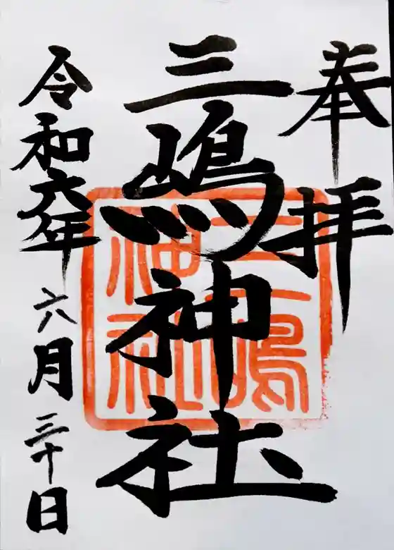 三嶋神社 社務所にて直書き御朱印頂戴致しました