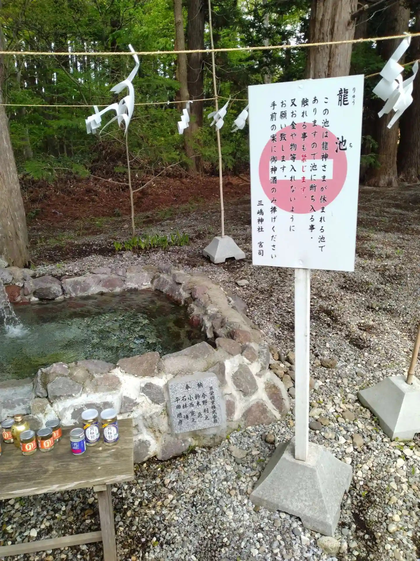 三嶋神社(龍宮城)右側にある(龍池)の注意書きの表札の様子です