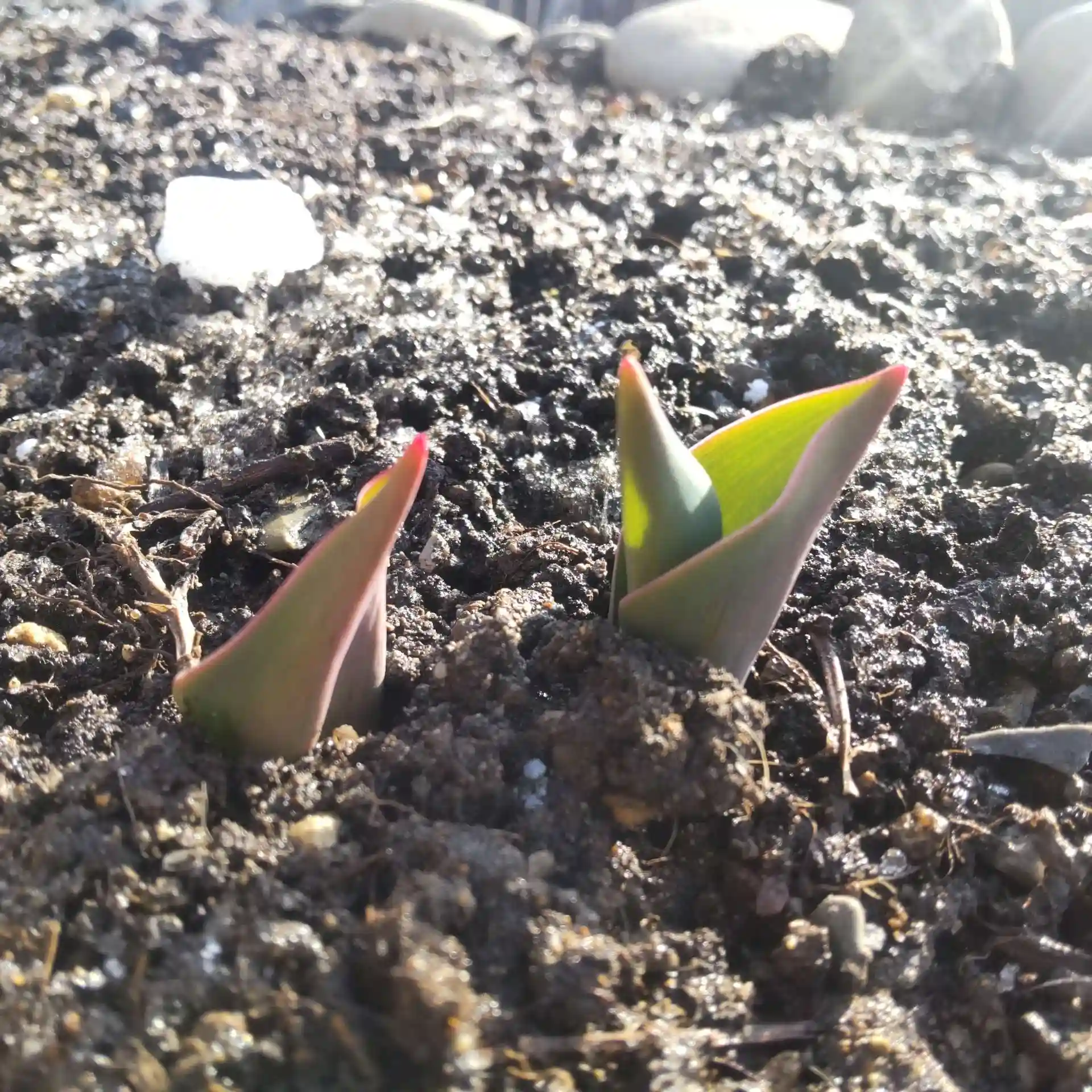 参道脇の花壇にチューリップが芽吹き始めました🌷