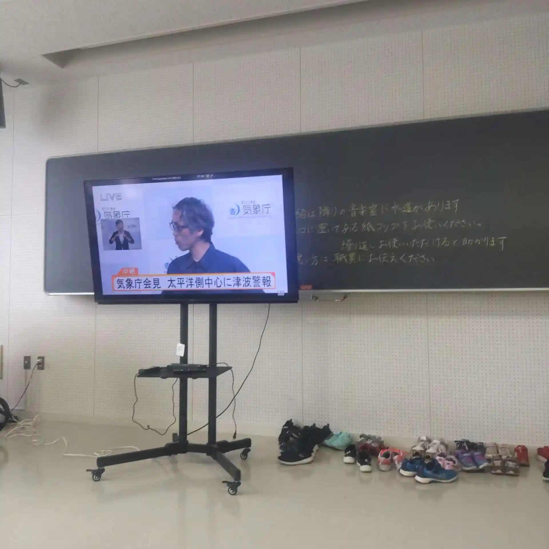 昨日の津波警報により、北斗市では避難指示が発出され、近くの避難所(浜分中学校)に一時避難しました。