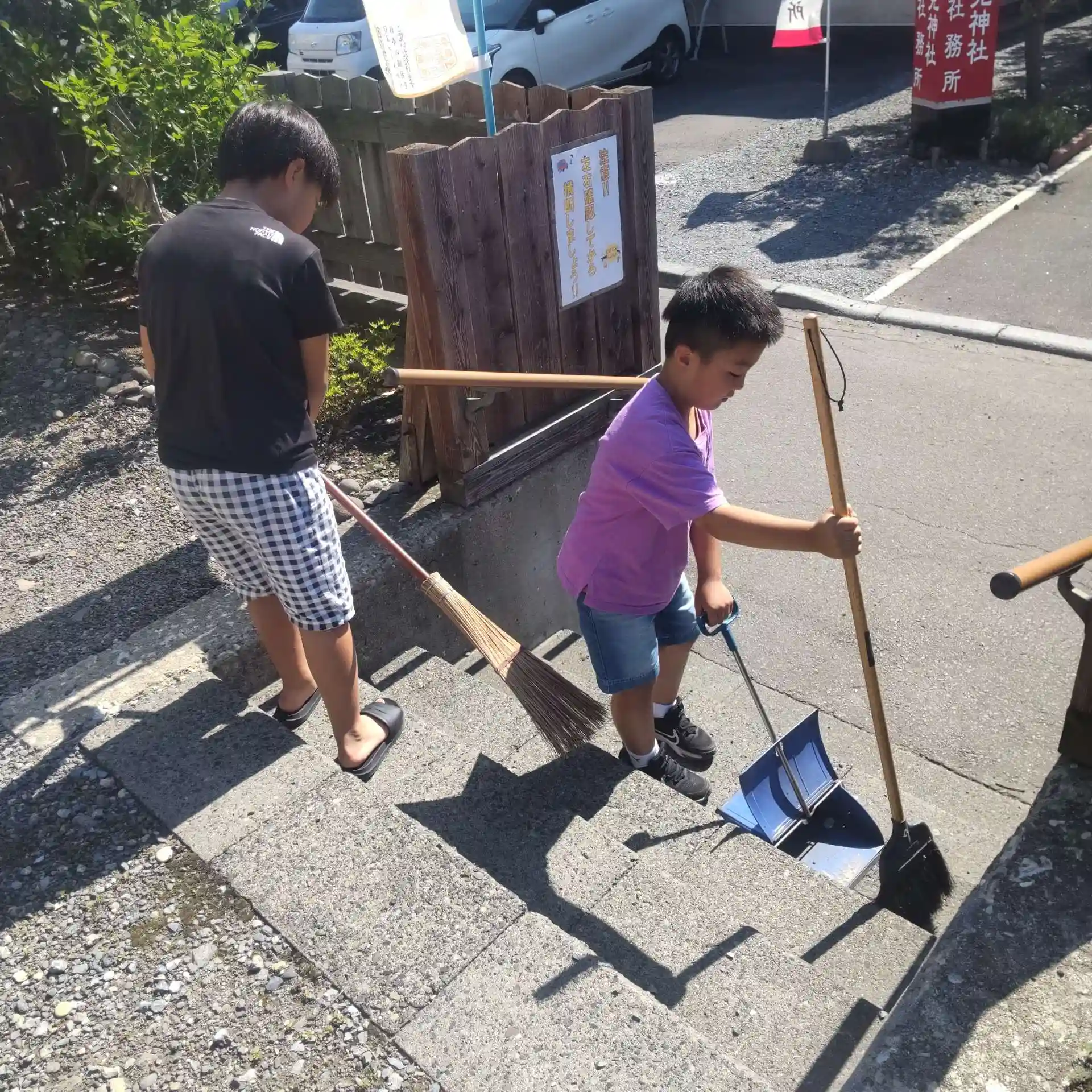 掃除には、夏休みで帰省中の子供たちにも協力してもらい行いました✨