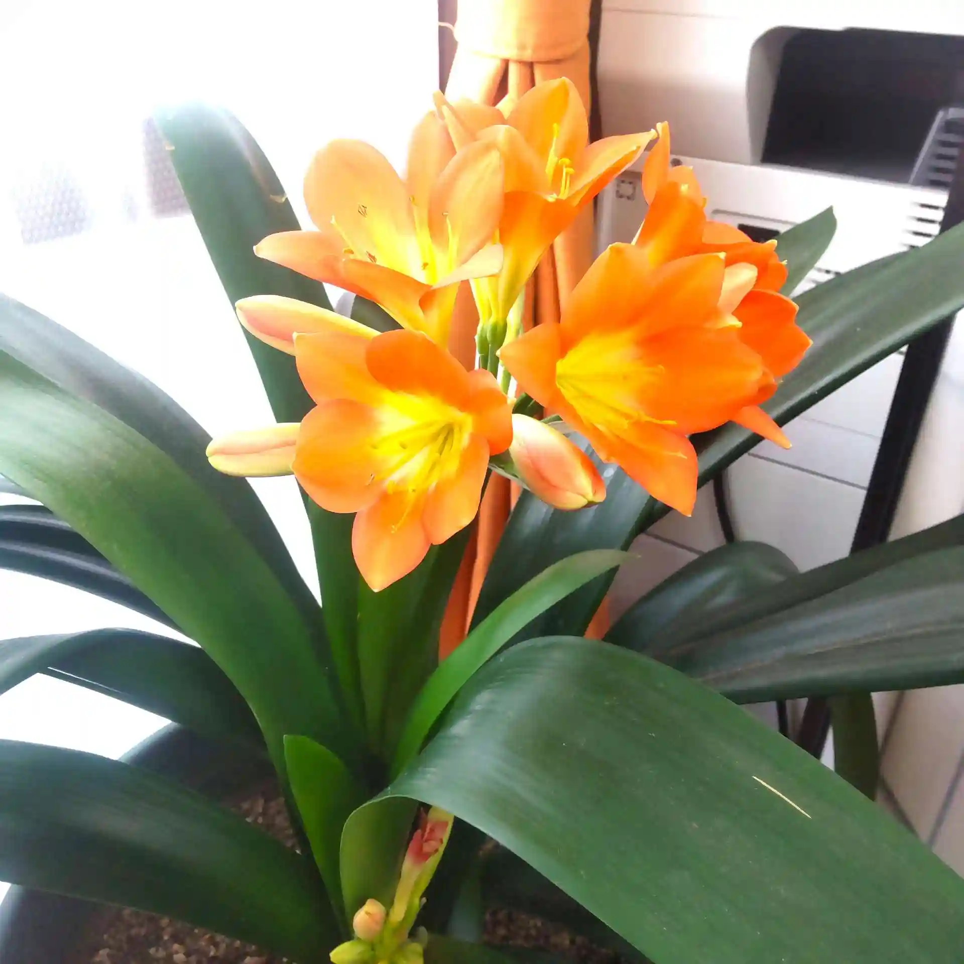 今朝、社務所のデスクのすぐ隣で、「君子蘭(クンシラン)」が鮮やかな大輪を咲かせてくれました✨