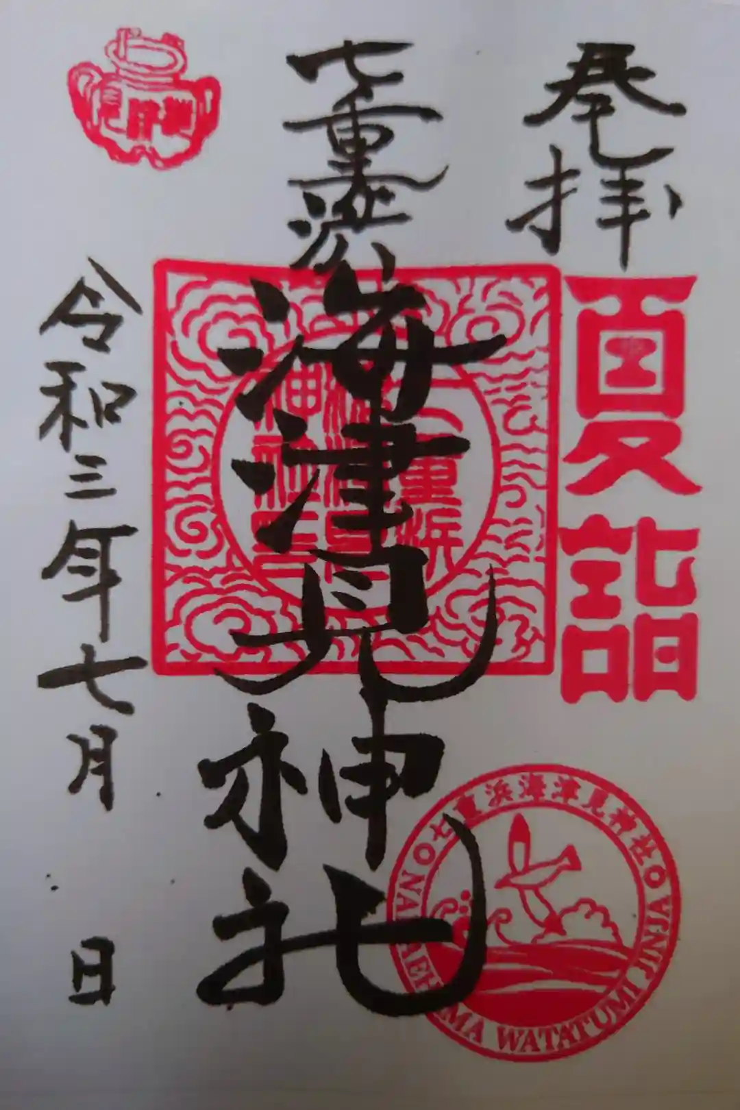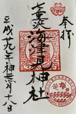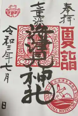 七重浜海神神社で拝受致しました御朱印になります。