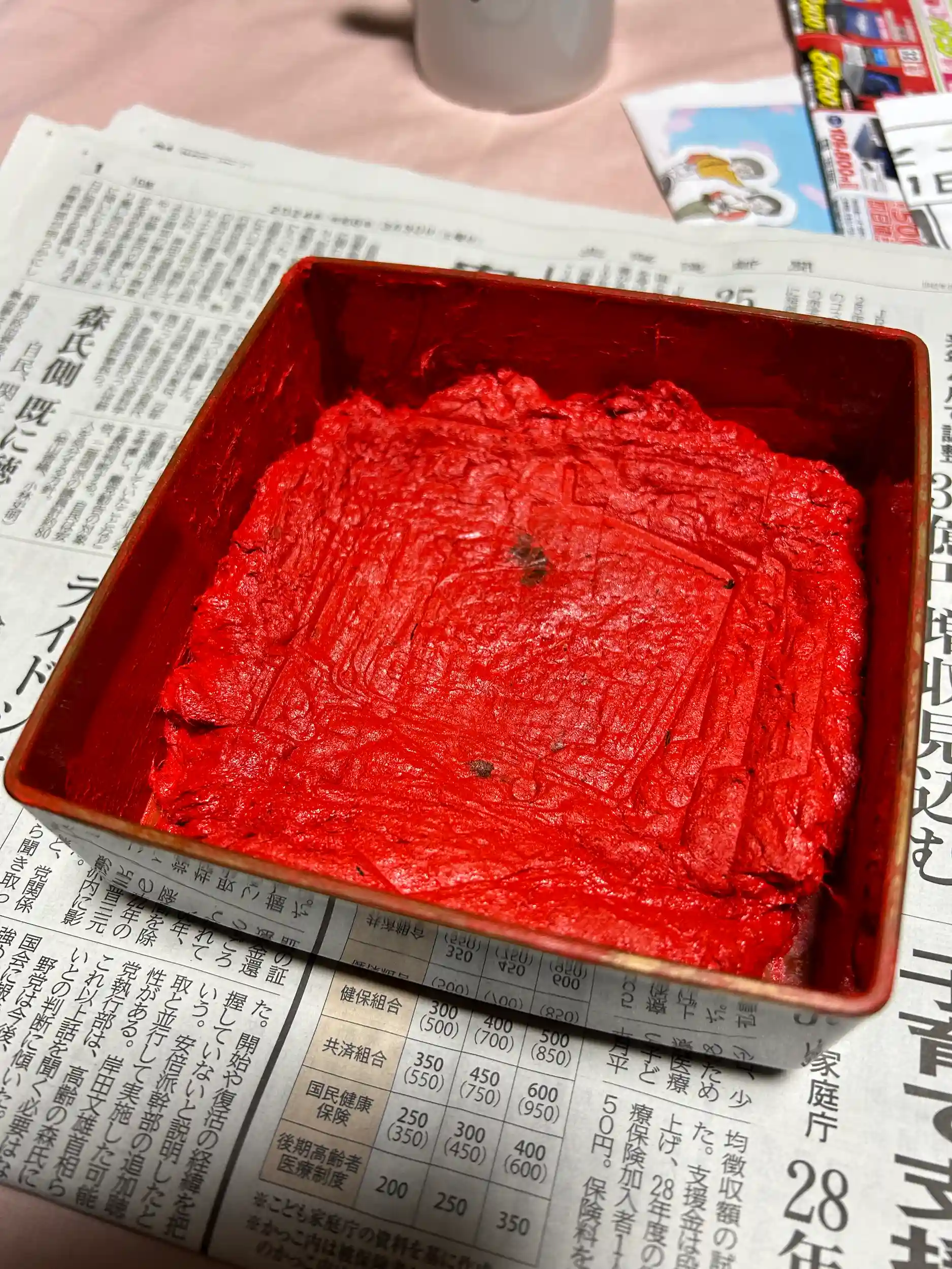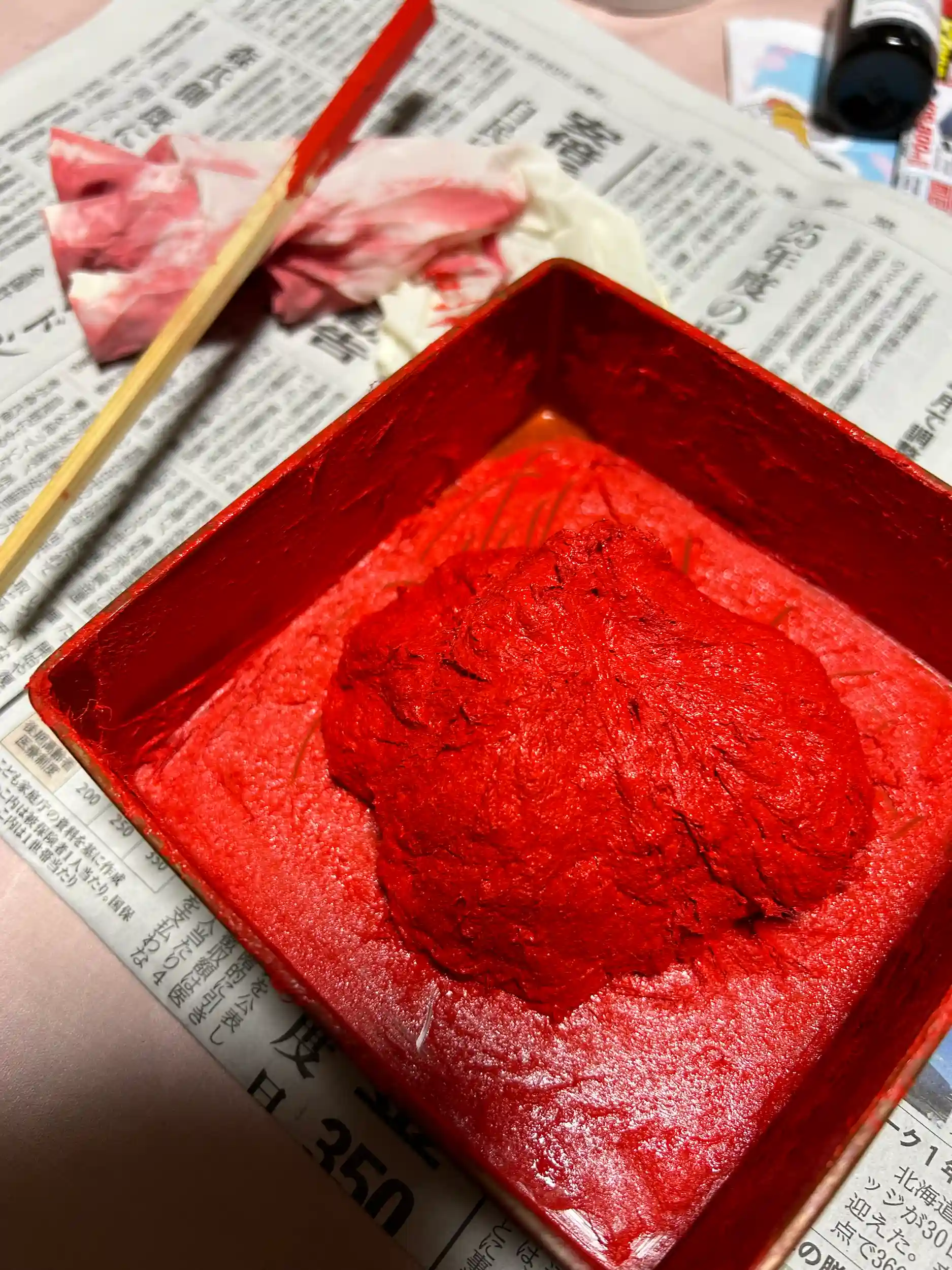今日は朝から朱を練り練りしてました。冬季間はカチカチなってしまいます。暖めて使用しますが、急ぎで使用したいときなどはジェットヒーターや電子レンジなどで宜しくない方法でしのぎます。また、ゴム印と相性が非常に悪くすぐにゴムが溶けてしまうので注意が必要です♪
