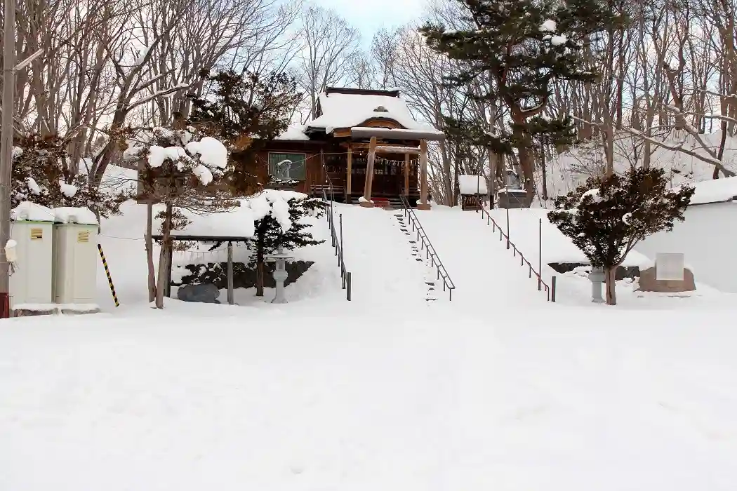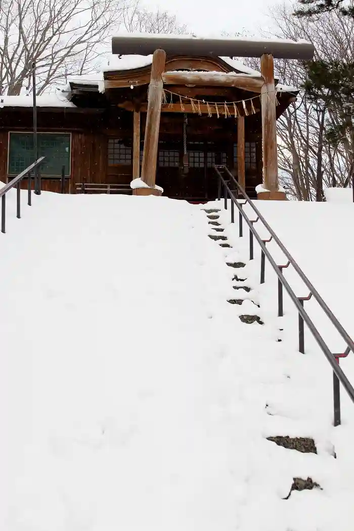 拝殿横には金毘羅神社もあるのですが、こちらも雪深く断念させていただきました