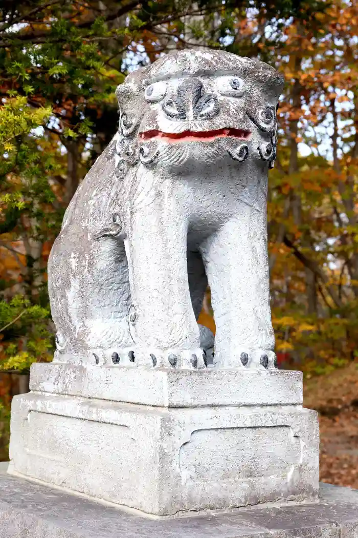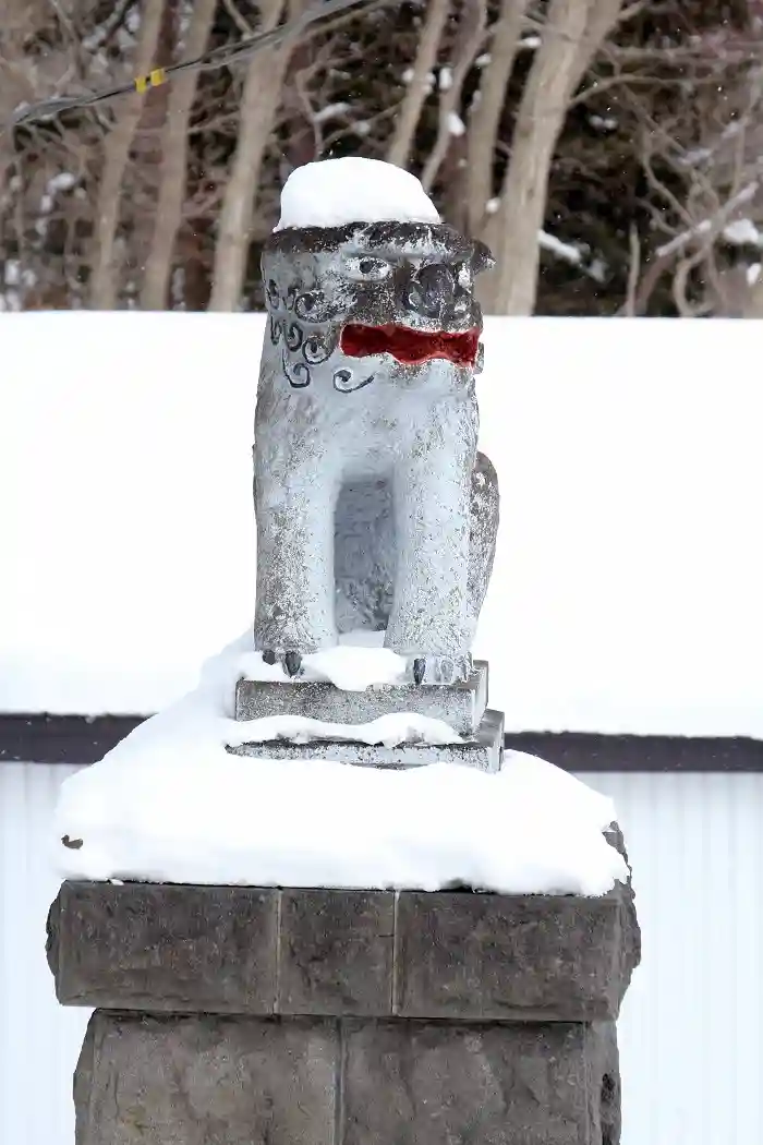 そんな大沼神社には愛くるしい狛犬さんがいらっしゃるのですが、この時はマフラーをしていました