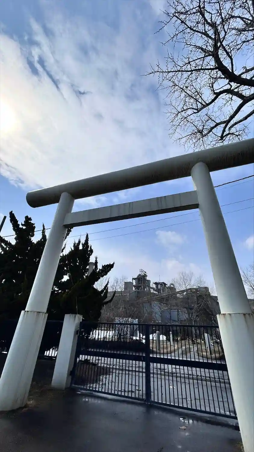 セメント工場の敷地内にある神社です。