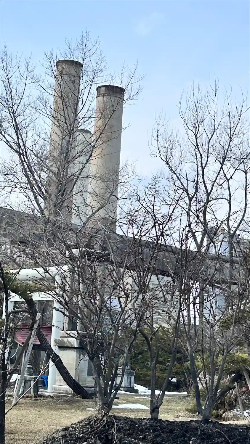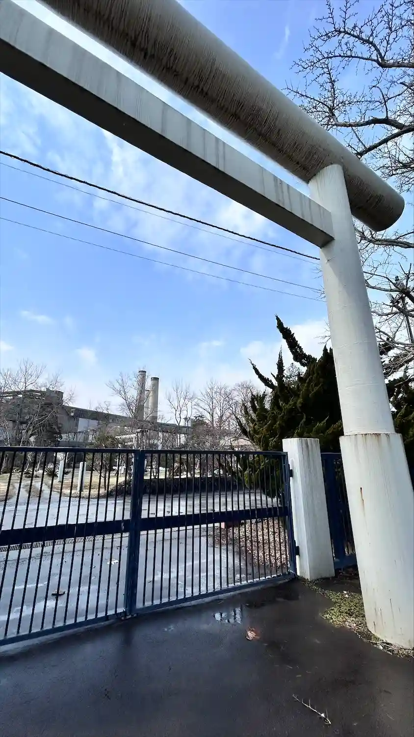鳥居と工場の煙突