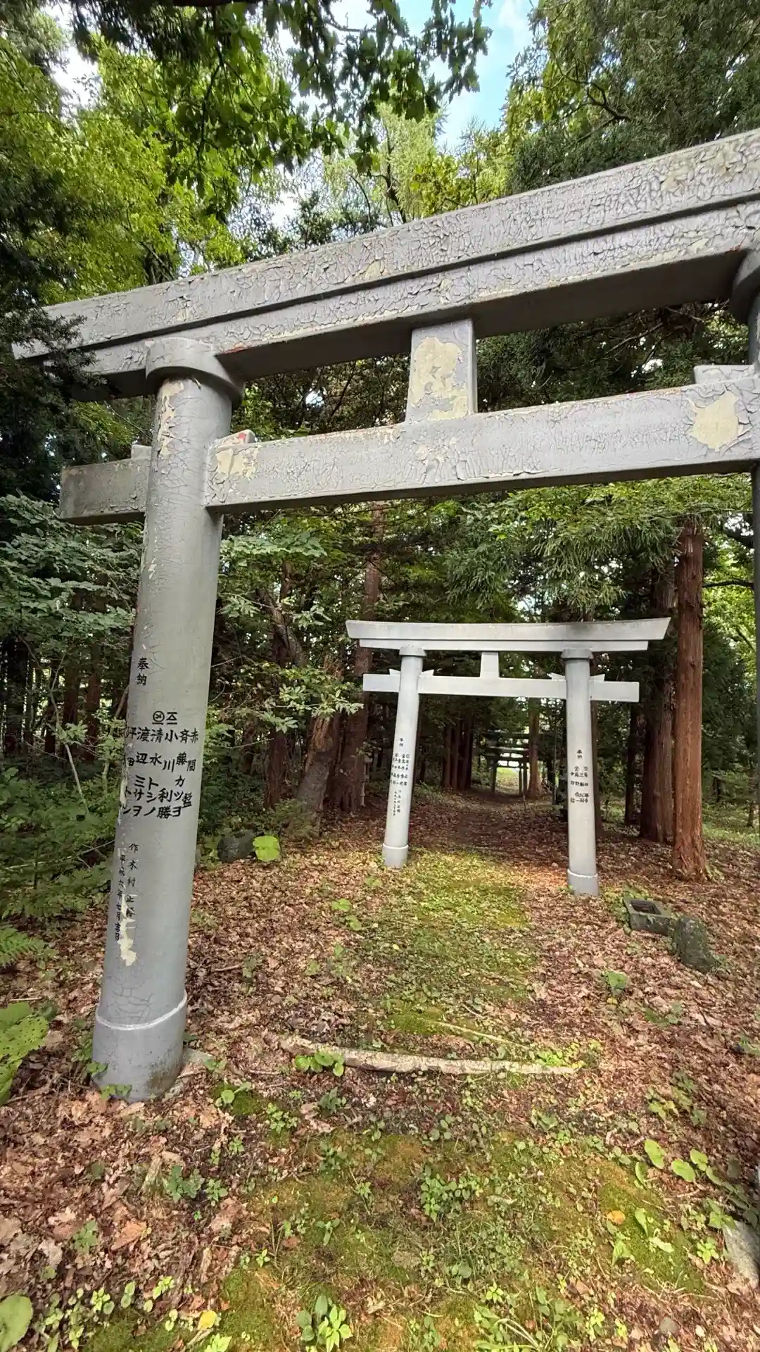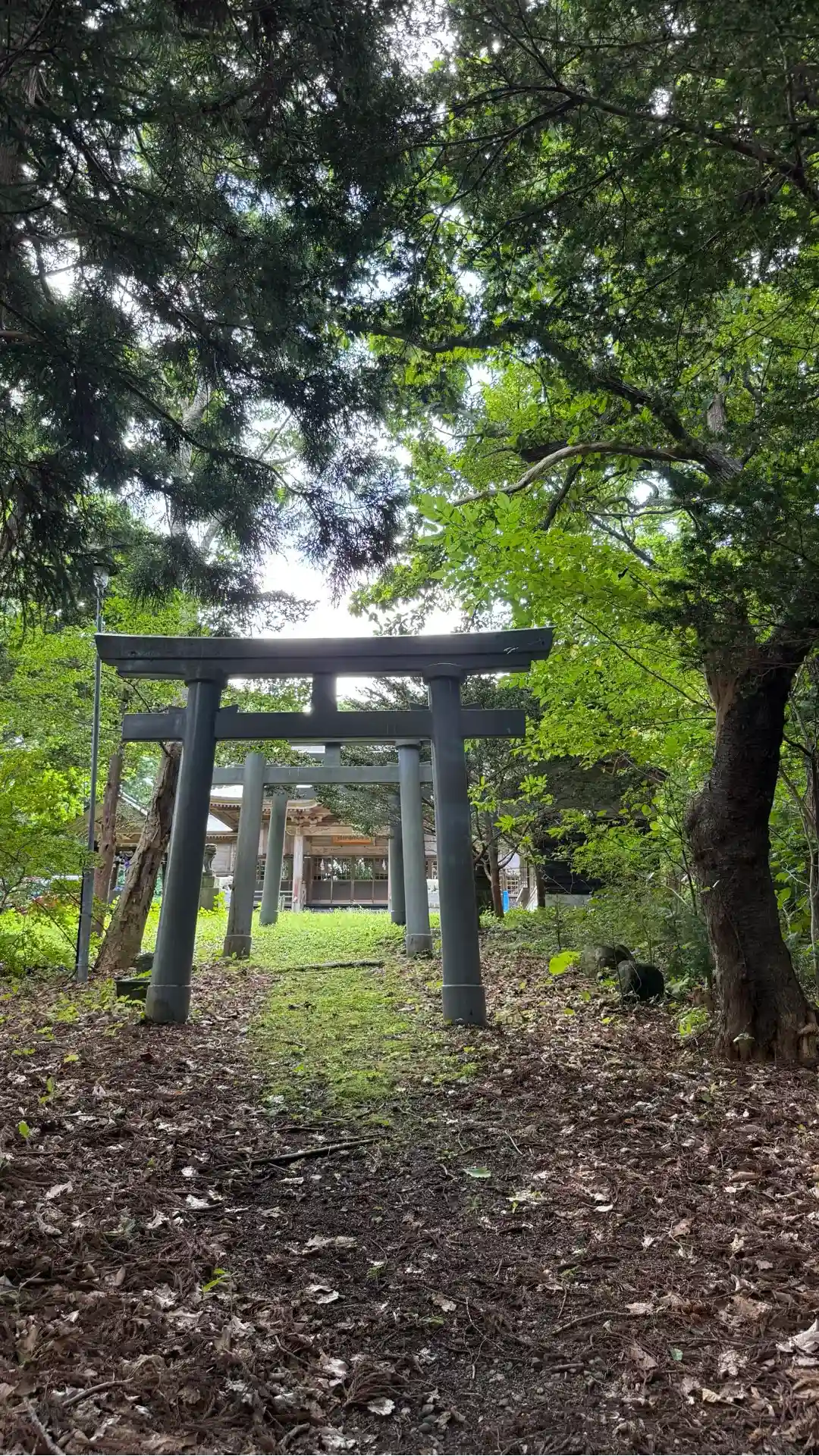 大きい木に囲まれているせいか、鳥居の下は薄暗いです