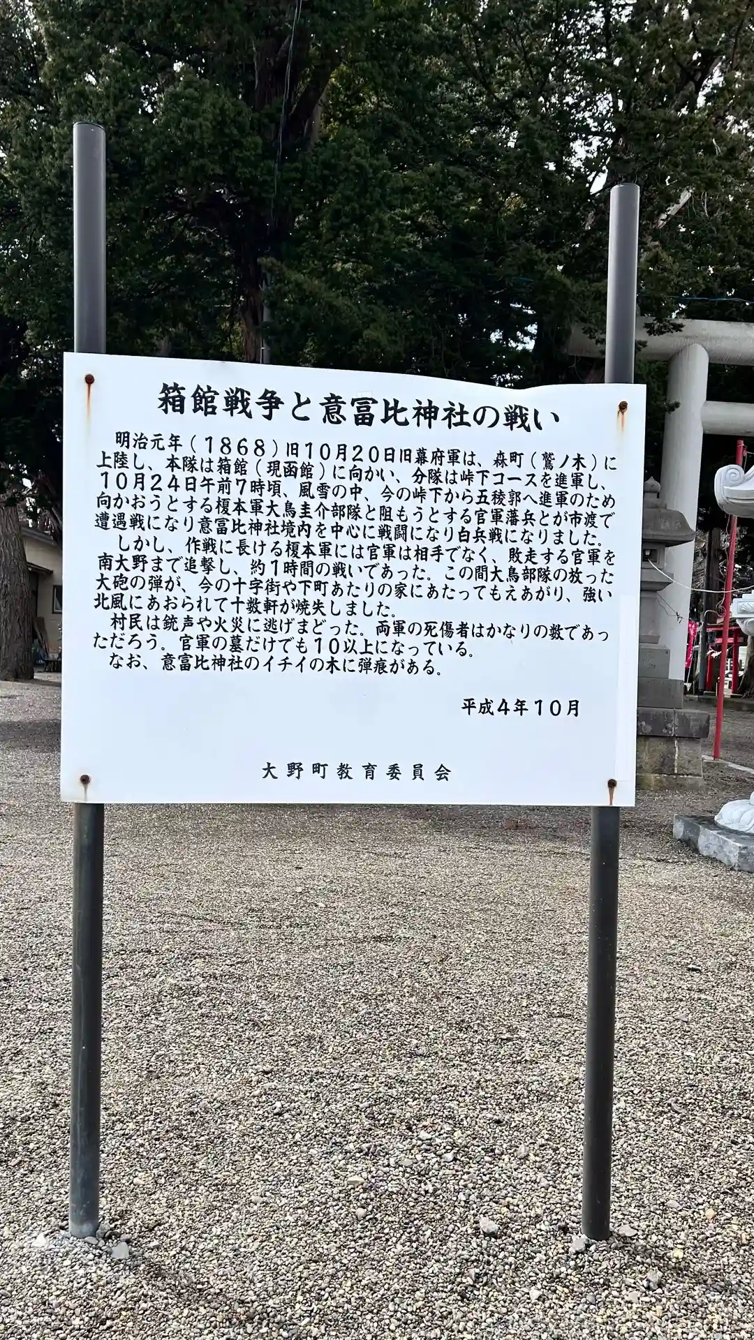 意富比神社 境内にある(箱館戦争と意富比神社の戦い)について書かれてます