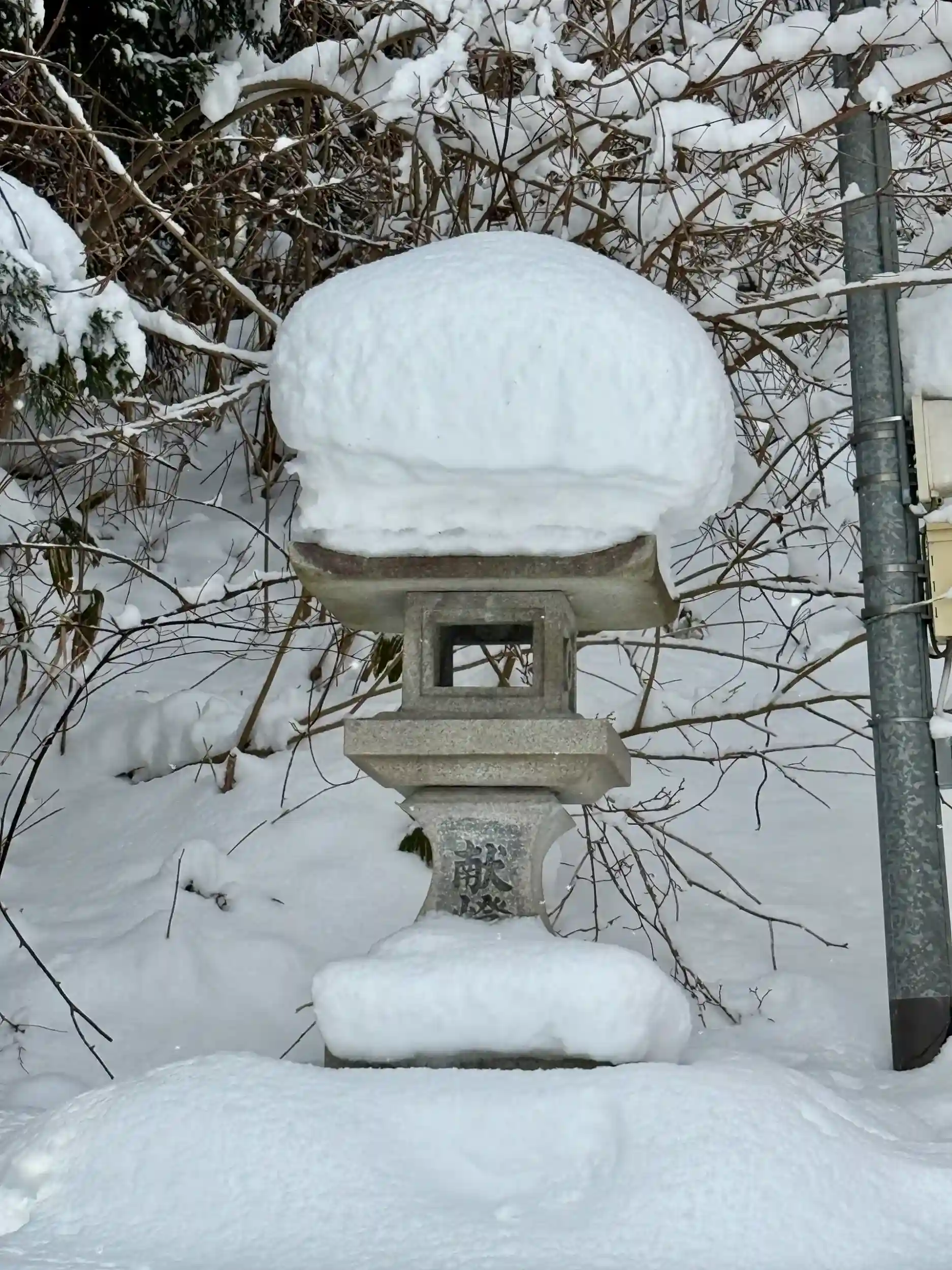 石灯篭が雪だるまに⛄️