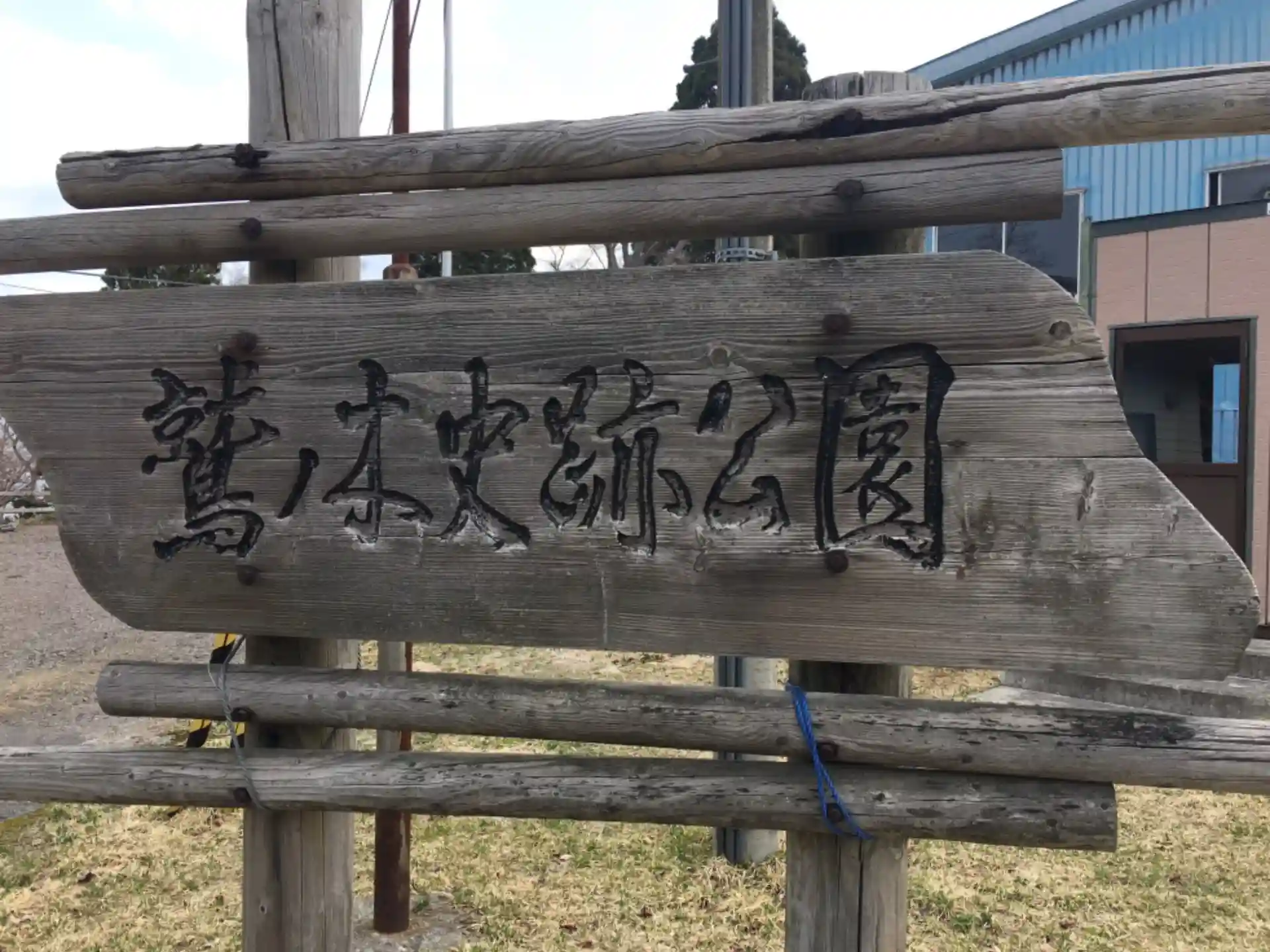 会館前の駐車場手前にある看板。
