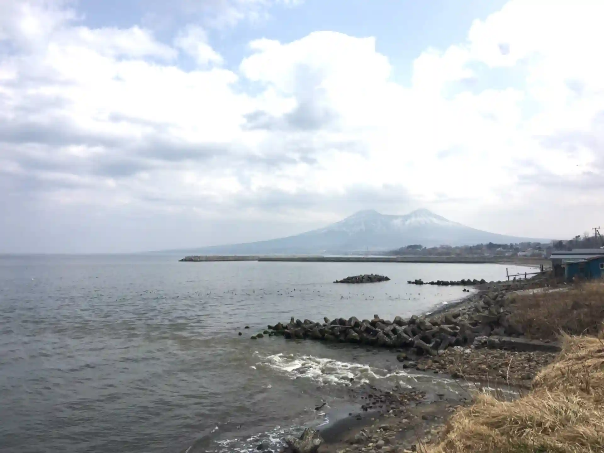 ここは榎本武揚軍の上陸の地。駒ヶ岳は少し霞んで見えました。