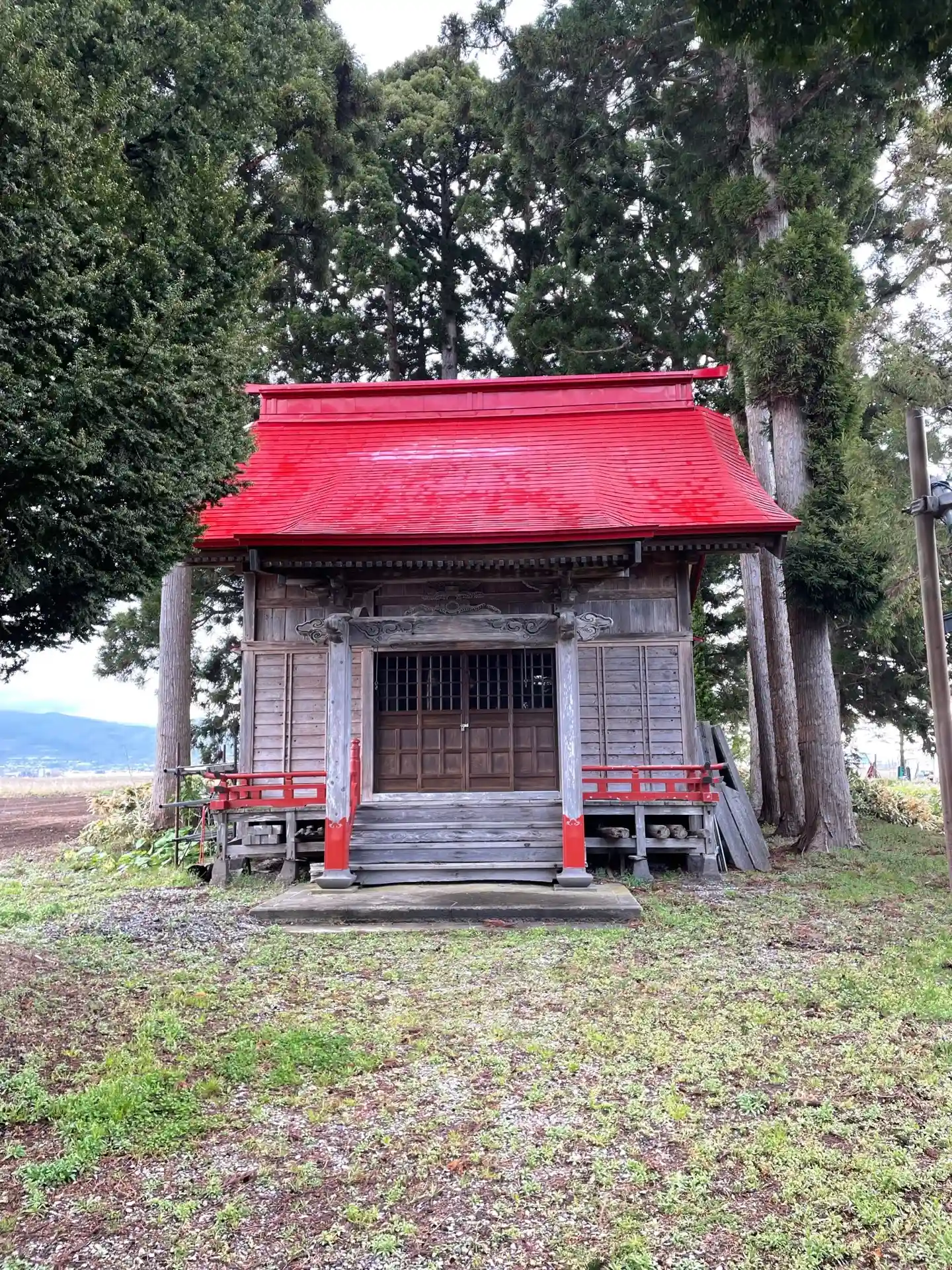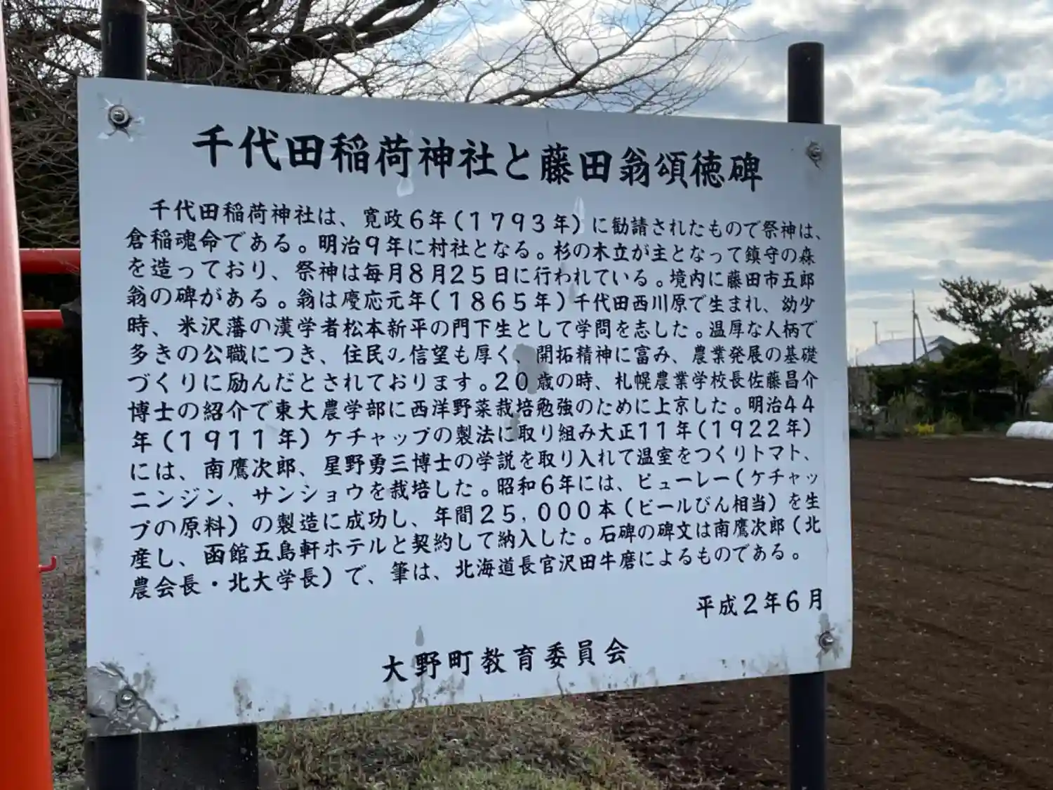 神社のお向かいの畑の真ん中にある
