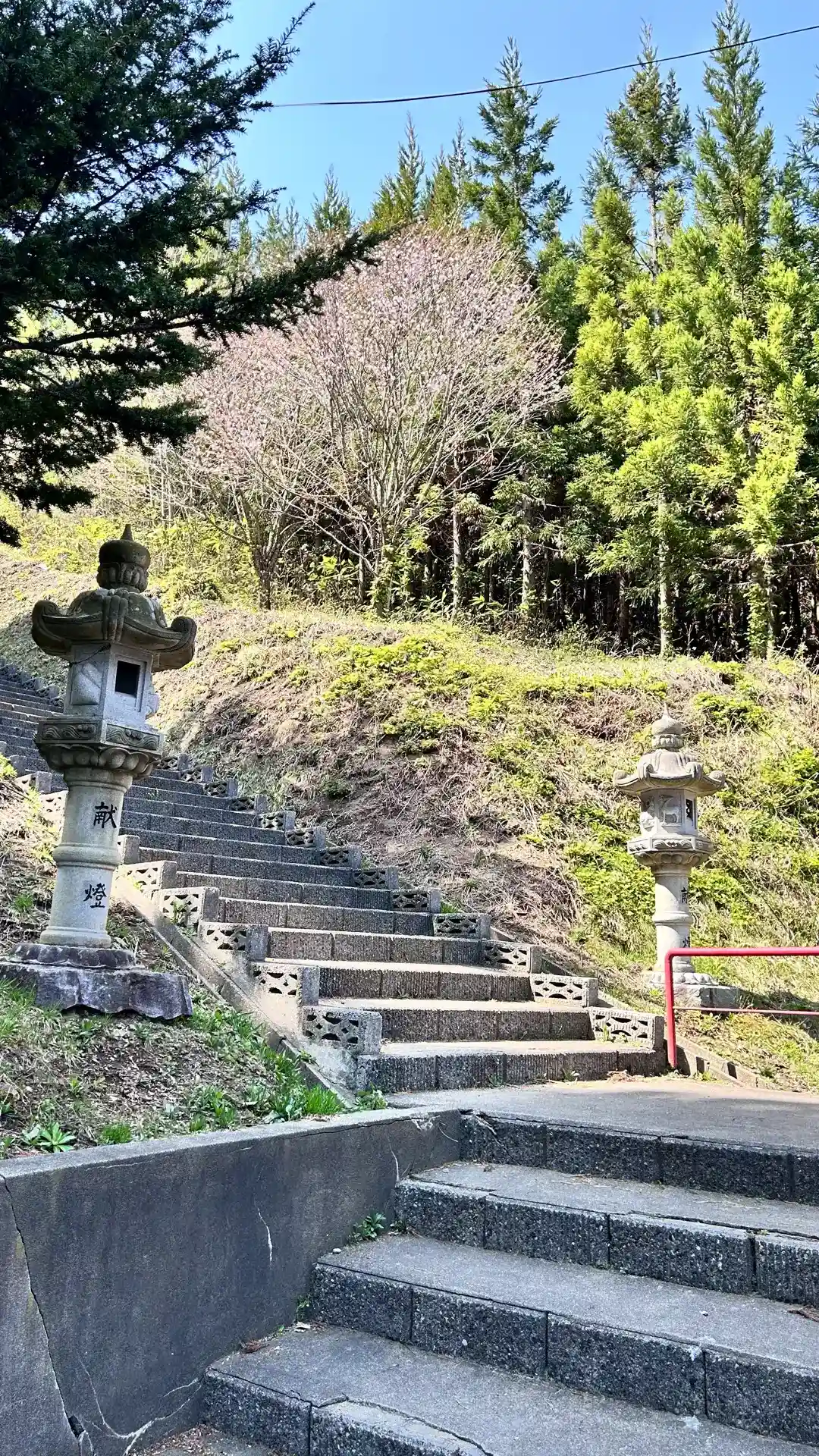 道路脇の拝殿の裏に200段の階段があっ…