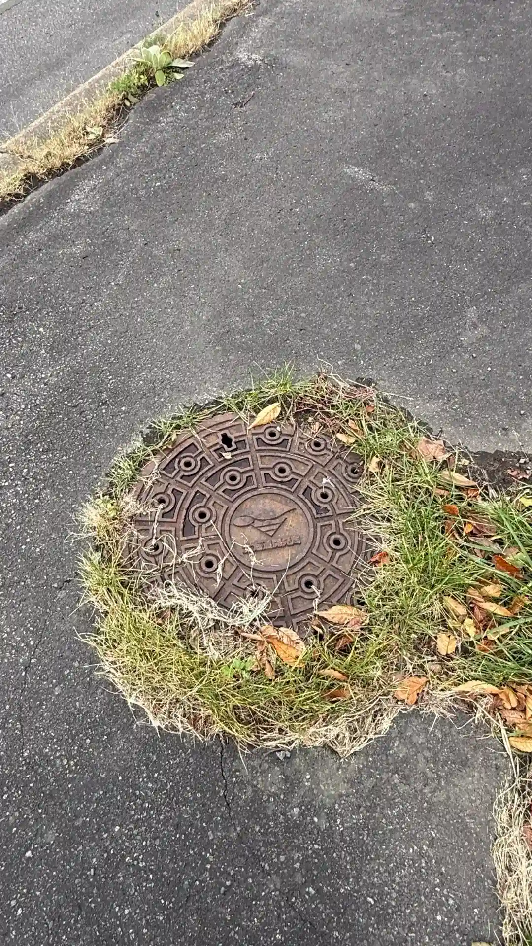 目の前にあるマンホールも境内の雑草に包まれています