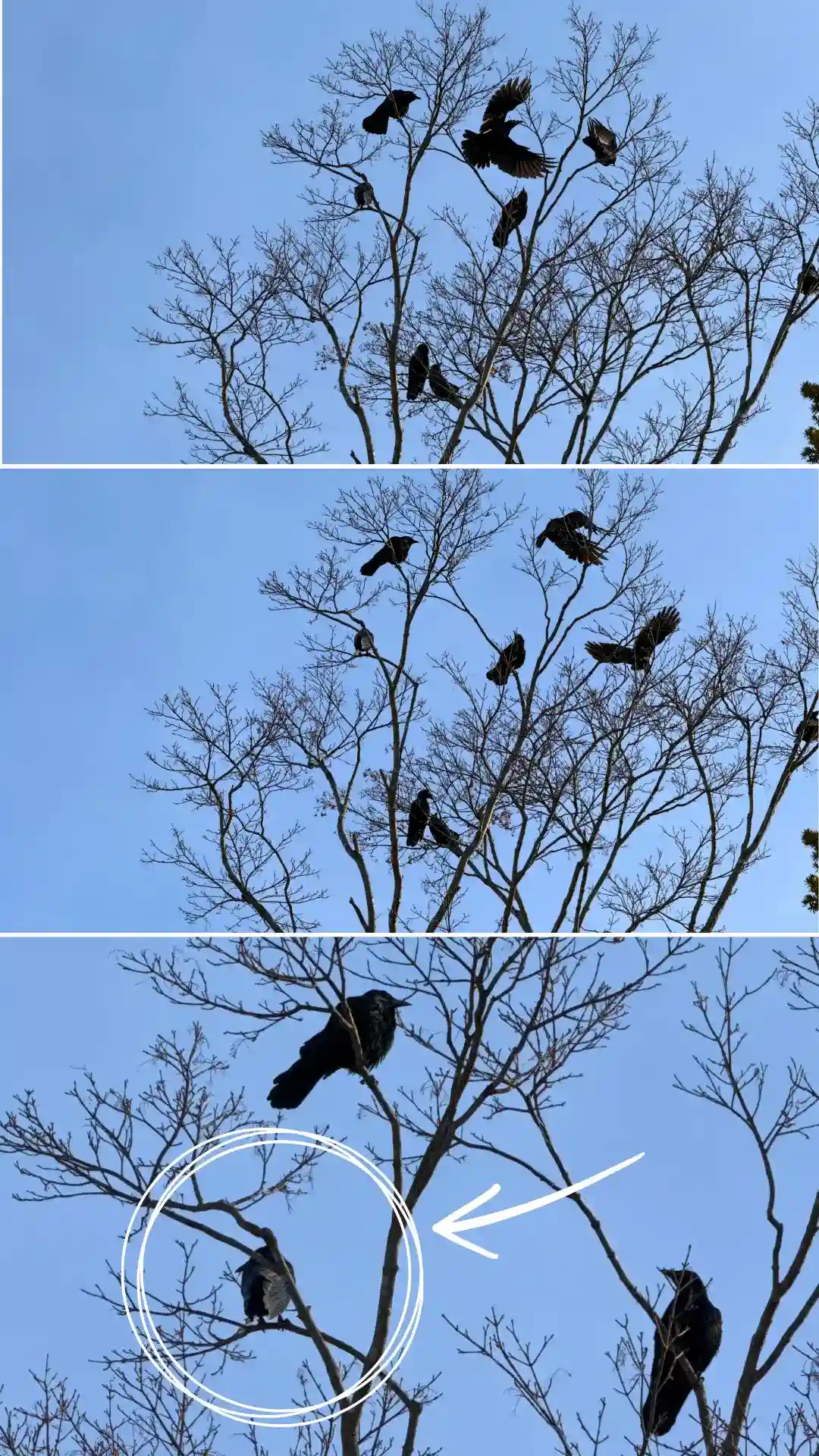 後日、写真を見返して気づきましたが、羽だけ白い子がいました🐦⬛かわいい