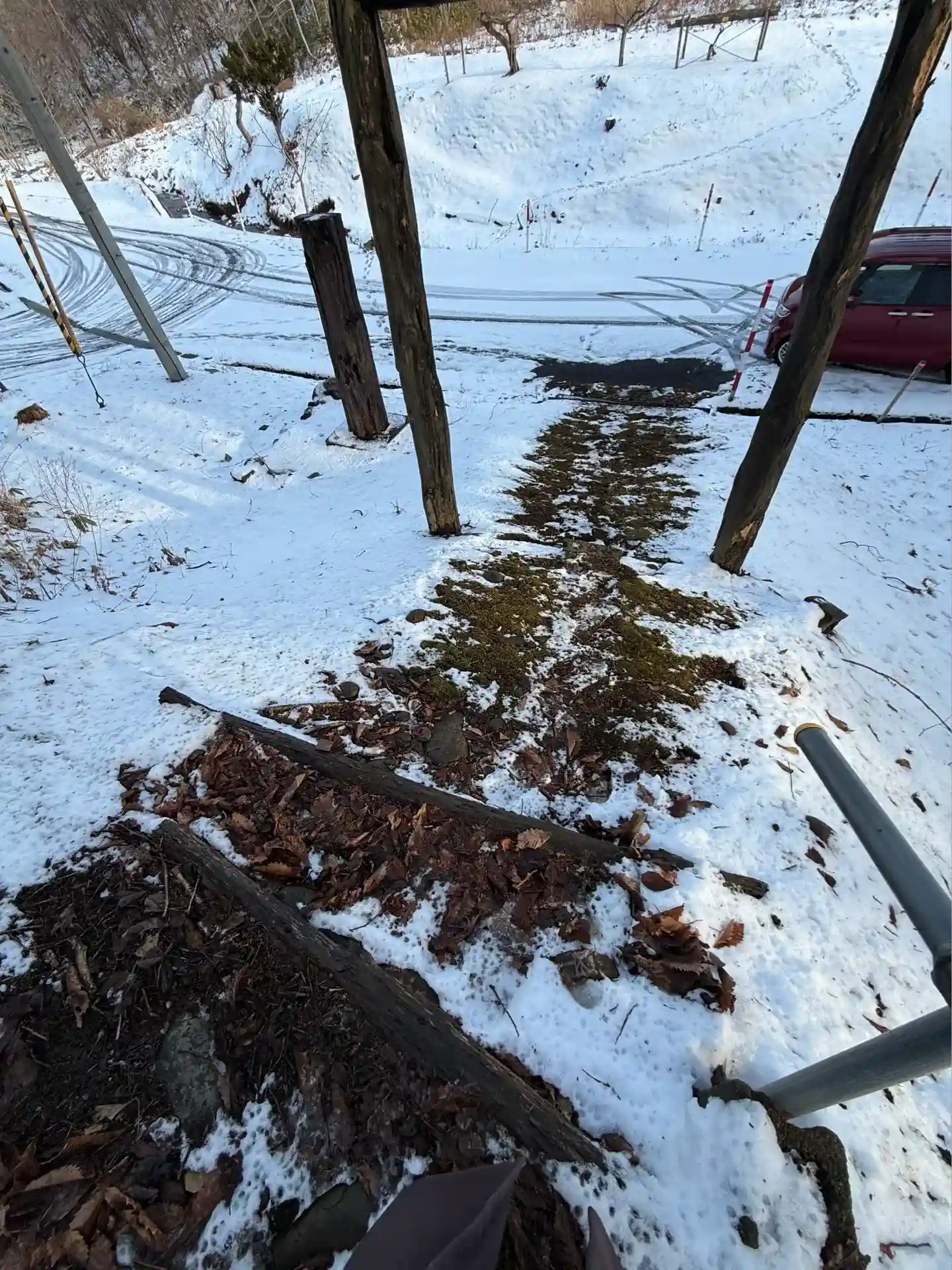 ここが1番急で歩幅が狭く、段差も高いので滑って落ちそうなため断念😞