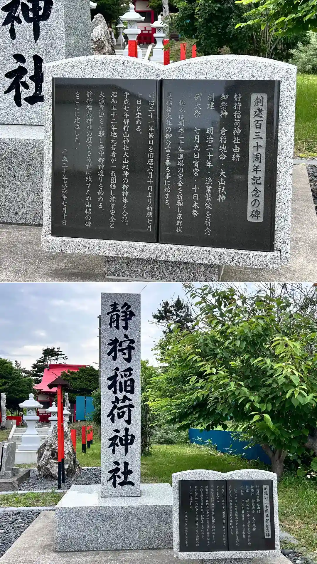静狩さんは、1887年(明治20年)に京都の伏見稲荷大社さんの御分霊をお祀りしたのが始まりとのこと。