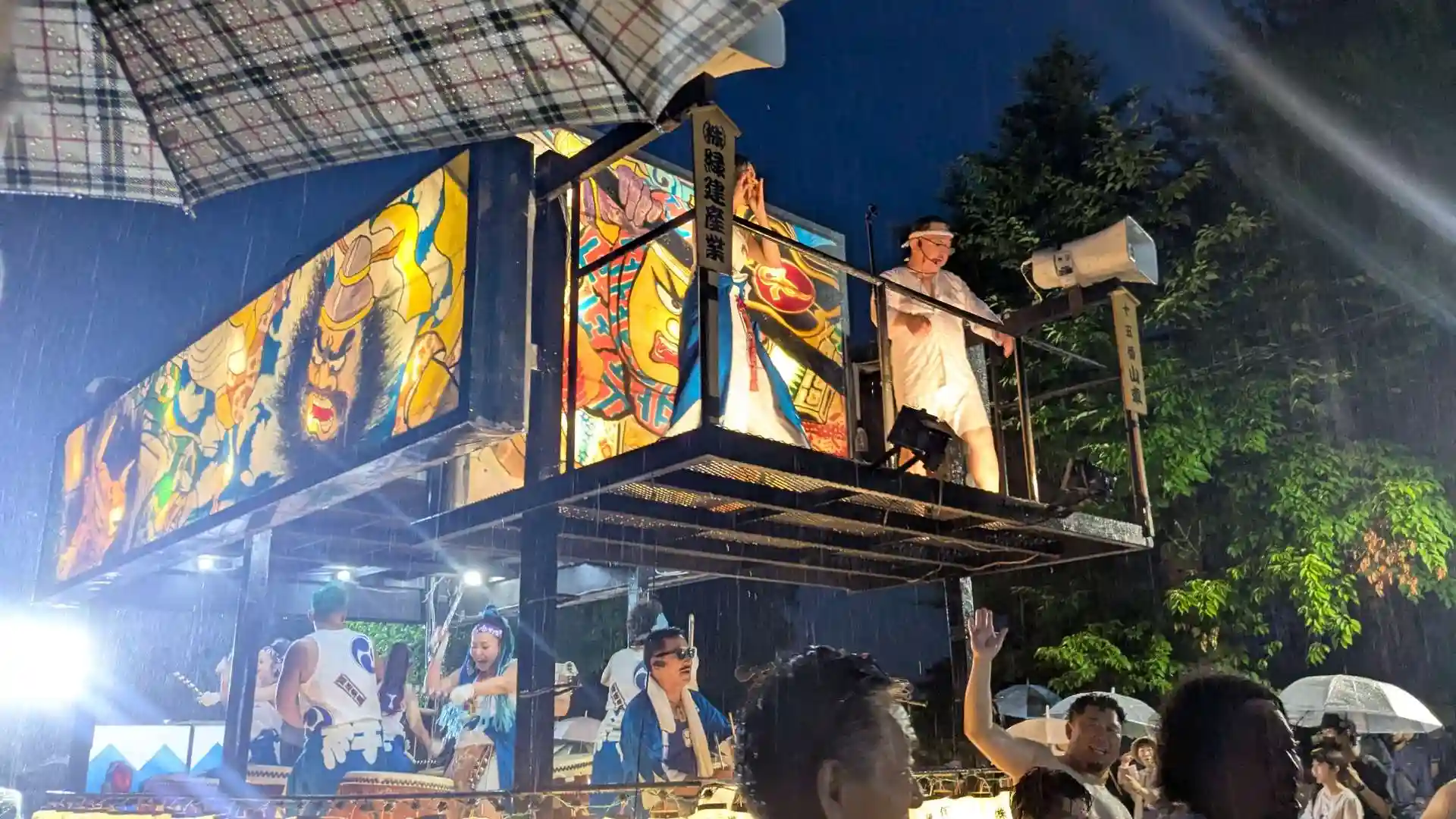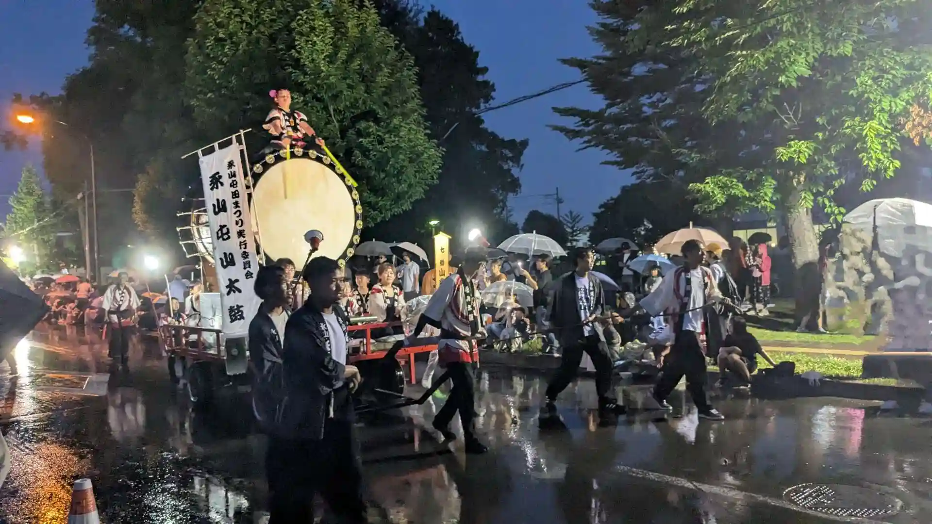 会場は永山市民センター前の広場。私は今回初めて永山屯田祭りに来ましたが大きな行灯や大締め太鼓が並んで動く様子は大迫力で他の人達も大盛り上がり。途中雨が降り出しましたが参加されている皆さんは雨にも負けず練り歩いていました。傘を持っていなかった私はずぶ濡れで退散。それでも美味しいものを食べたりと楽しい時間を満喫出来ました。関係者の皆さんお疲れ様でした。