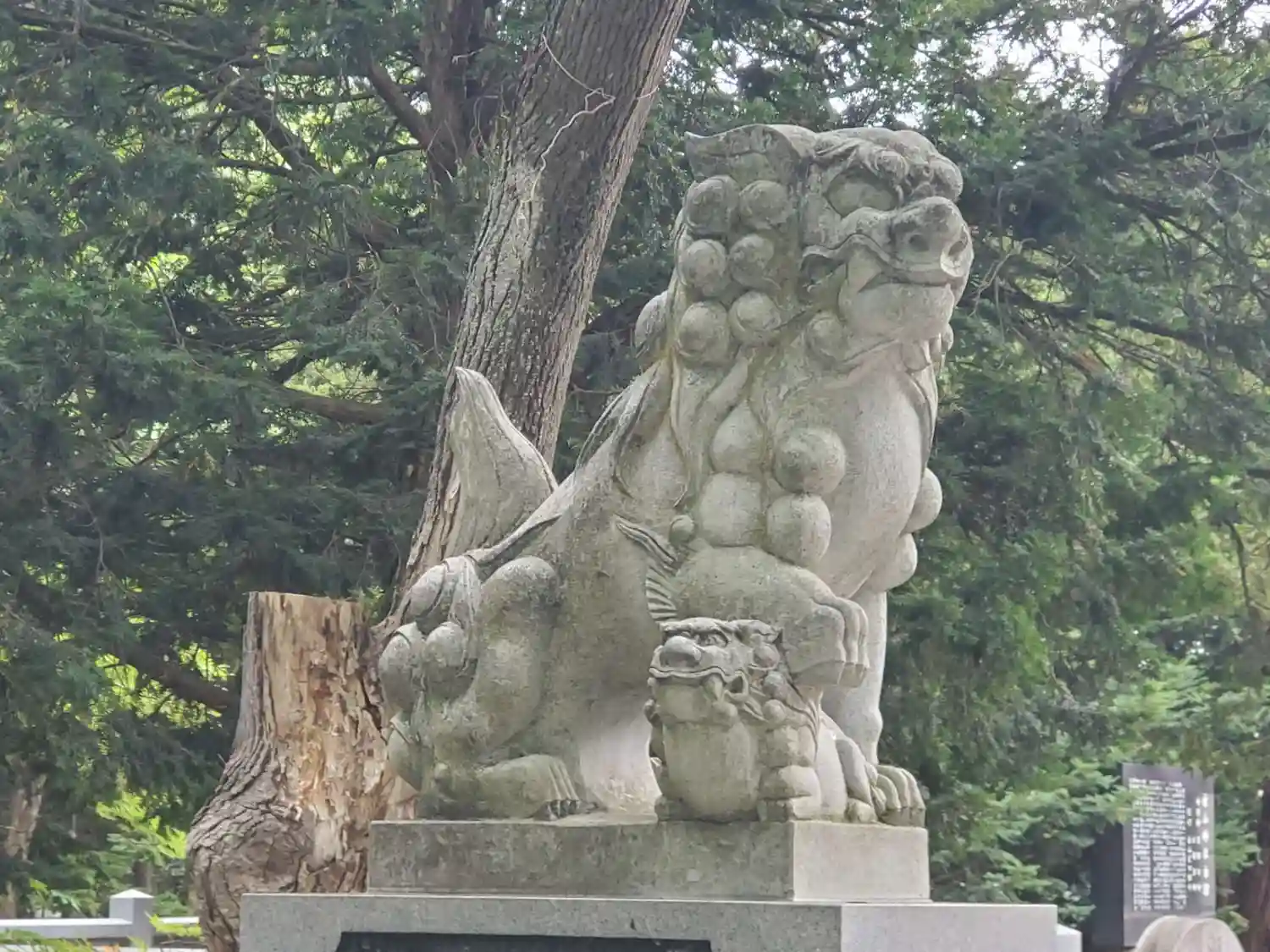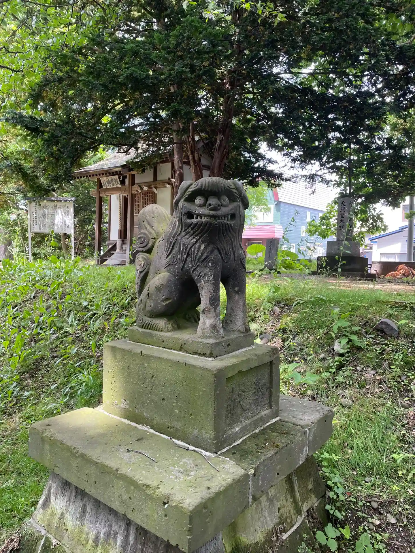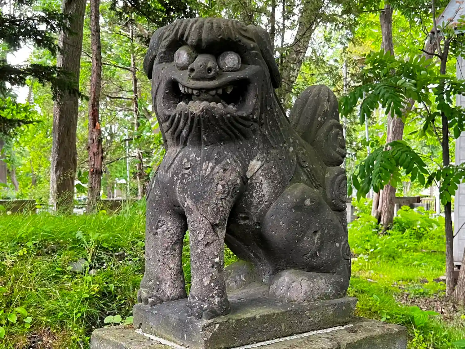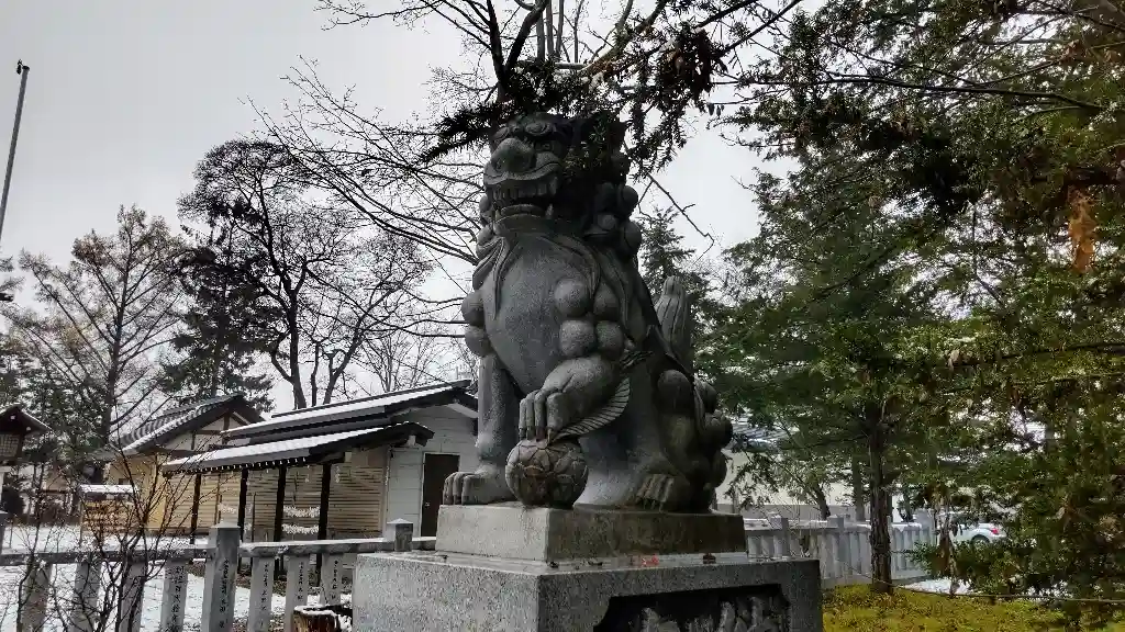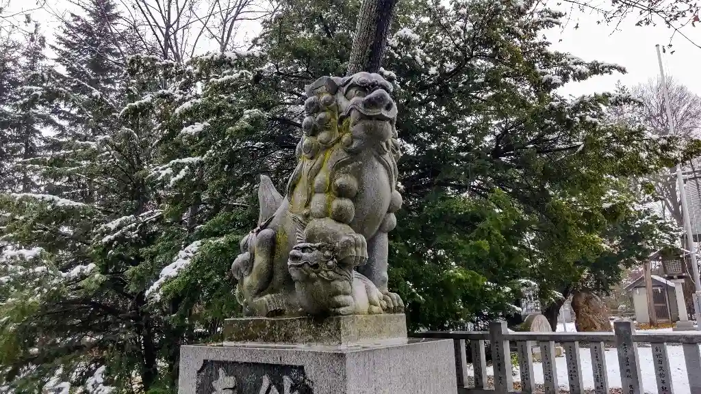 参道右側の<狛犬>。古い北海道の狛犬によく使われている黒い石材を使用。