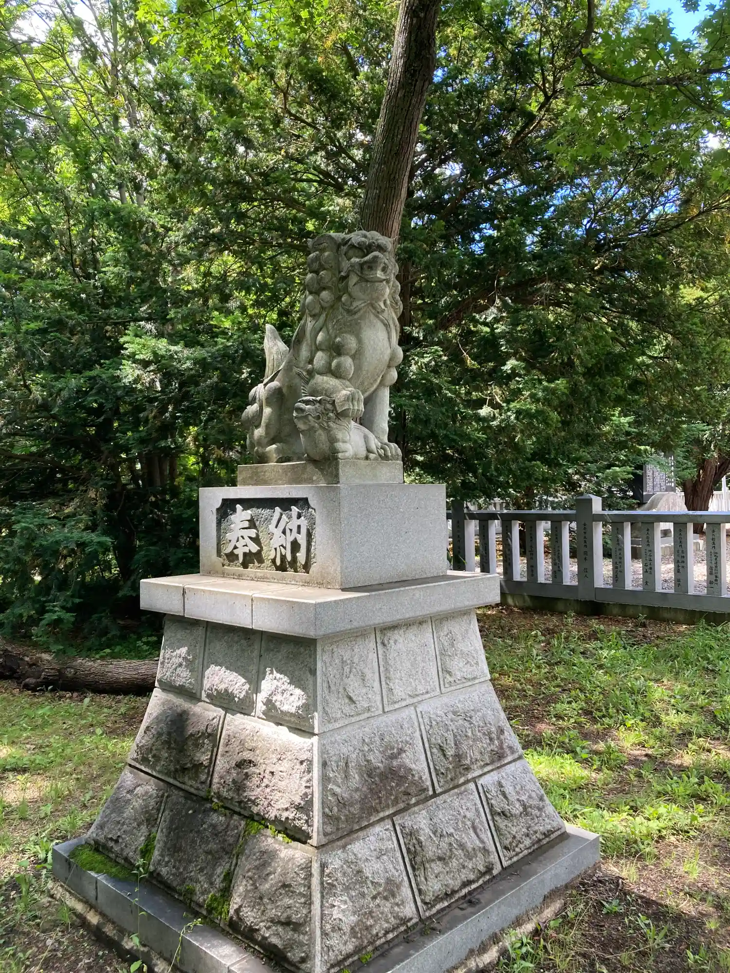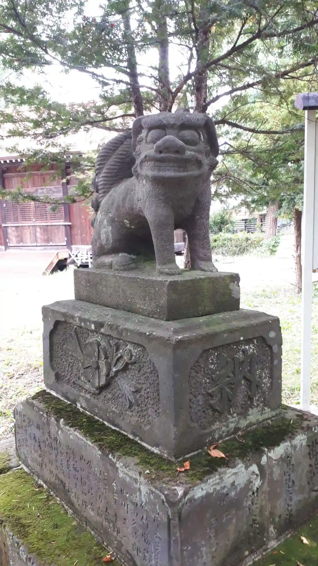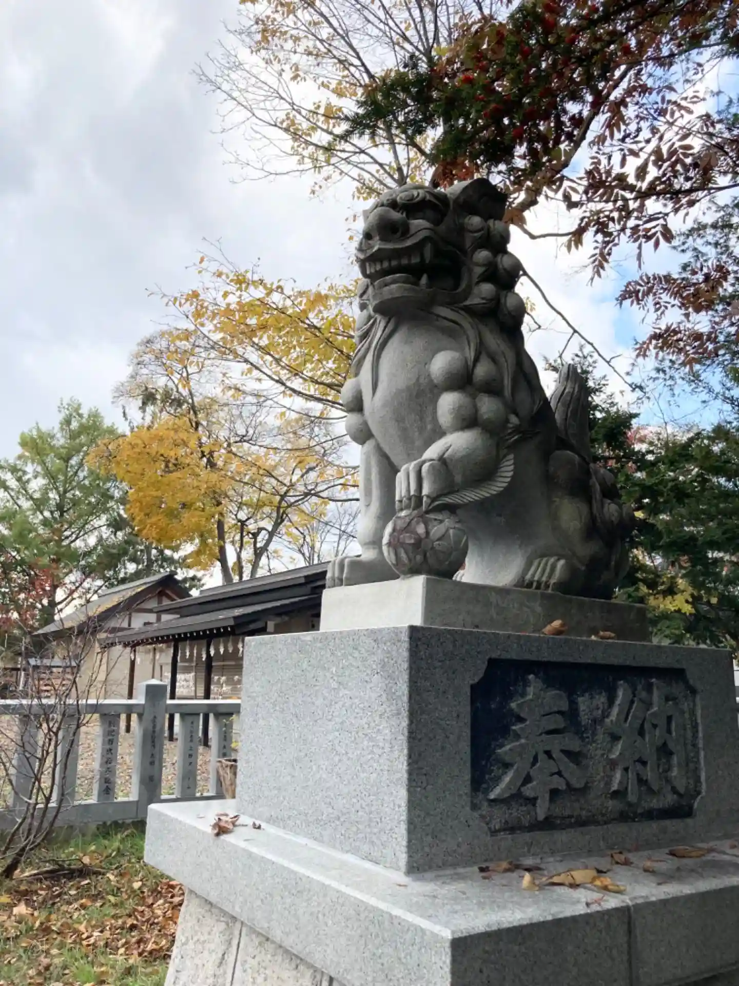 参道右側の<狛犬>。古い北海道の狛犬によく使われている黒い石材を使用。